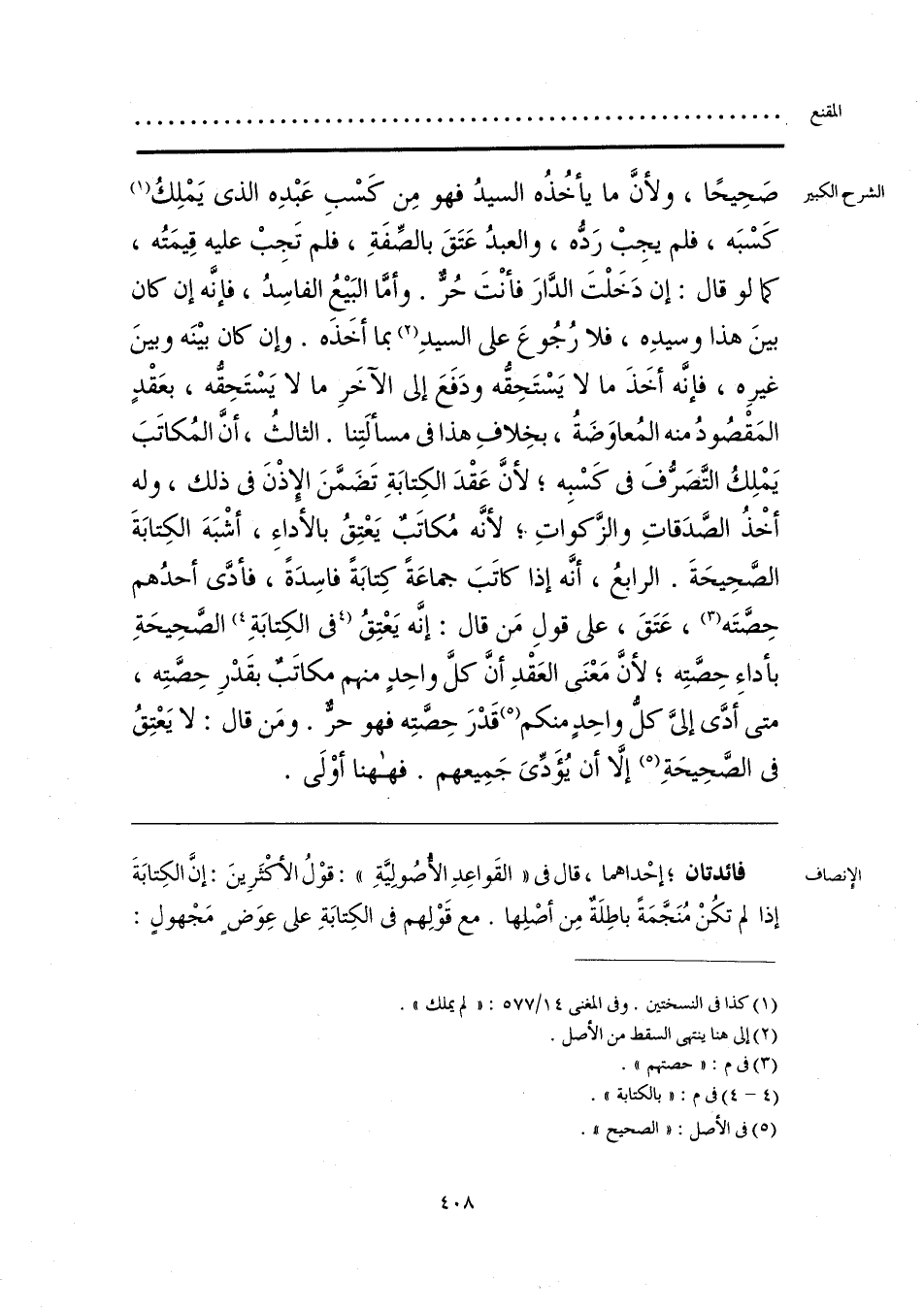فائدتان؛ إحْداهما، قال في «القَواعِدِ الأُصُولِيَّةِ»: قوْلُ الأكْثَرِينَ: إنَّ الكِتابَةَ إذا لم تكُنْ مُنَجَّمَةً باطِلَةٌ مِن أصْلِها. مع قَوْلِهم في الكِتابَةِ على عِوَضٍ مَجْهولٍ: