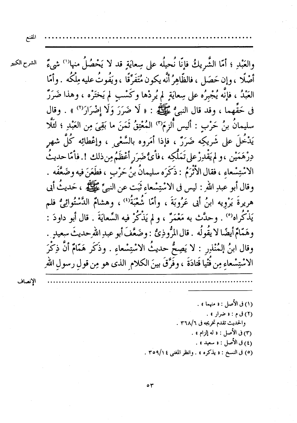 والعَبْدِ؛ أمّا الشَّرِيكُ فإنّا نُحيلُه على سِعايَةٍ قد لا يَحْصُلُ منها (¬1) شيءٌ أصْلًا، وإن حَصَل، فالظّاهِرُ أنَّه يكون مُتَفَرِّقًا، ويَفُوتُ عليه مِلْكُه. وأمّا العَبْدُ، فإنَّه يُجْبِرُه على سِعايَةٍ لم يُرِدْها وكَسْبٍ لم يَختَرْه، وهذا ضَرَر في حَقِّهما، وقد قال النبي - صلى الله عليه وسلم -: «لَا ضَرَرَ وَلَا إِضْرَارَ (¬2)». وقال سليمانُ بنُ حَرْبٍ: أليس الزِمَ (¬3) المُعْتِقُ ثَمَنَ ما بَقِيَ مِن العَبْدِ، لئَلَّا يَدْخُلَ على شَريكِه ضَرَرٌ، فإذا أمَروه بالسَّعْي، وإعْطائِه كُلَّ شهرٍ دِرْهَمَين، ولم يَقْدِرْ على تَمَلُّكِه، فأيُّ ضَرَرٍ أعْظَمُ مِن ذلك!. فأمّا حديثُ الاسْتِسْعاءِ، فقال الأثْرَمُ: ذَكَرَه سليمانُ بنُ حَرْبٍ، فطَعَنَ فيه وضَعَّفَه. وقال أبو عبدِ اللهِ: ليس في الاسْتِسْعاءِ ثَبَت عن النبيِّ - صلى الله عليه وسلم - حَديثُ أبي هريرةَ يَرْويه ابنُ أبي عَرُوبَةَ، وأمّا شُعْبَةُ (¬4)، وهشامٌ الدَّسْتُوائِي فلم يَذْكُراه (¬5). وحدَّث به مَعْمَر، ولم يَذْكُرْ فيه السِّعايَةَ. قال أبو داودَ: وهَمّامٌ أيضًا لا يقُولُه. قال المرُّوذِيُّ: وضَعَّفَ أبو عبدِ اللهِ حديثَ سعيدٍ. وقال ابنُ المُنْذِرِ: لا يَصِحُّ حديثُ الاسْتِسْعاءِ. وذَكَر هَمّامٌ أنَّ ذِكْرَ الاسْتِسْعاءِ مِن فُتْيا قَتادَةَ، وفرَّقَ بينَ الكلامِ الذي هو مِن قولِ رسولِ اللهِ