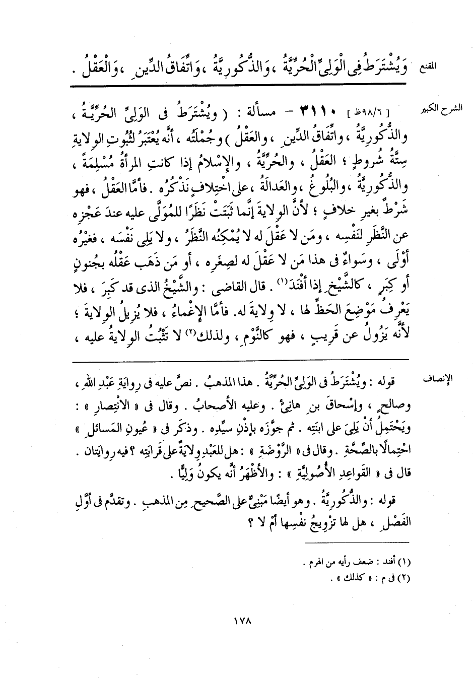 قوله: والذُّكُورِيَّةُ. وهو أيضًا مَبْنِيٌّ على الصَّحيحِ مِن المذهبِ. وتقدَّم في أوَّلِ الفَصْلِ، هل لها تزْويجُ نفْسِها أمْ لا؟