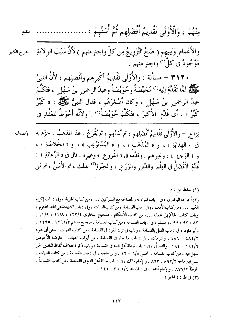 نِزاعٍ- والأَوْلَى تَقْدِيمُ أفْضَلِهم، ثم أسَنِّهم، ثم يُقْرَعُ. هذا المذهبُ. جزَم به في «الهِدايَةِ»، و «المُذْهَبِ»، و «المُسْتَوْعِبِ»، و «الخُلاصَةِ»، و «الوَجيزِ»، وغيرِهم. وقدَّمه في «الفُروعِ» وغيرِه. قال في «الرِّعايَةِ»: قُدِّمَ الأفْضَلُ في العِلْمِ والدِّينِ والوَرَعِ، والخِبْرَةِ (¬1) بذلك، ثم الأسَنُّ، ثم مَن