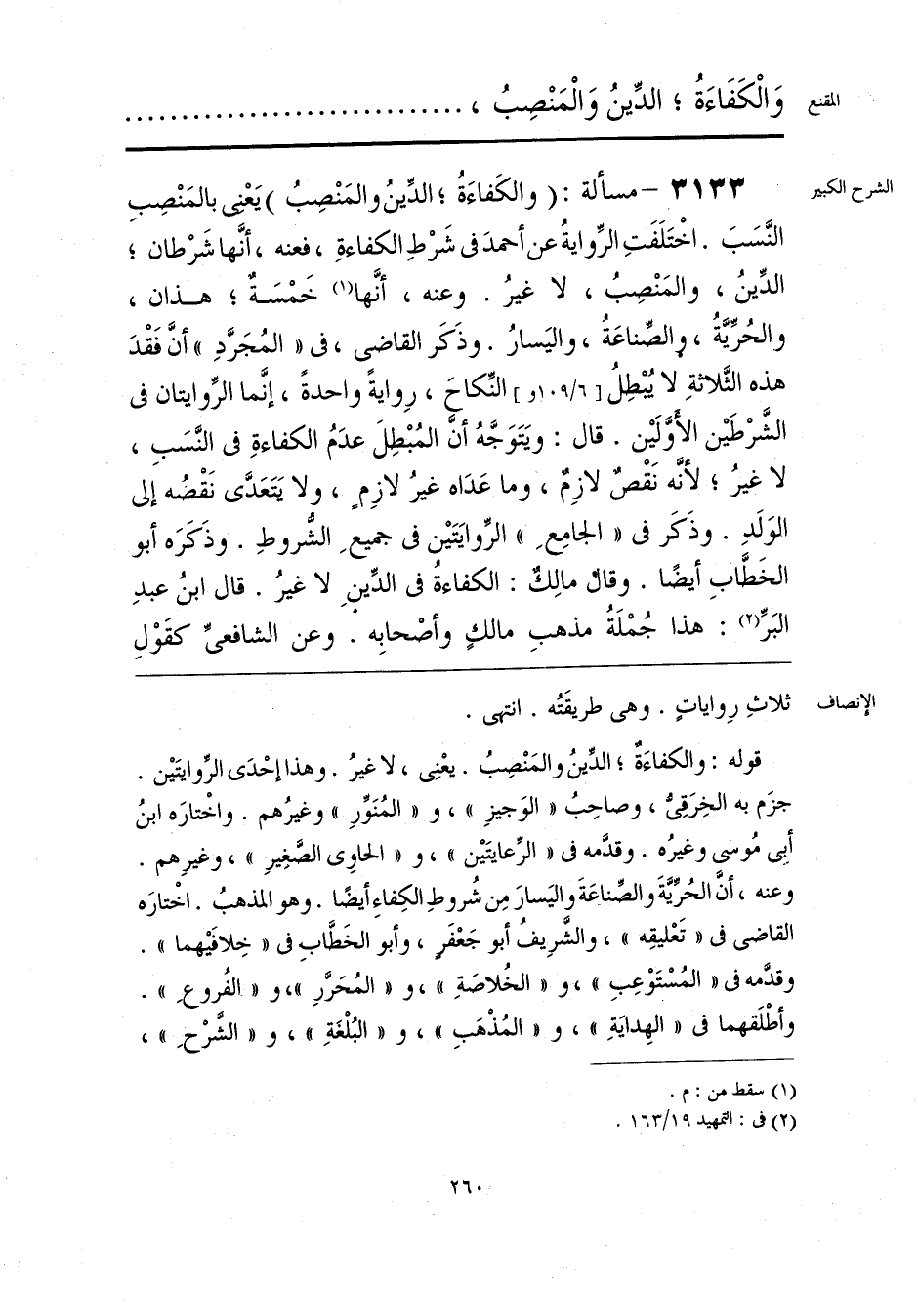 قوله: والكفاءَةُ؛ الدِّينُ والمَنْصِبُ. يعْنِي، لا غيرُ. وهذا إحْدَى الرِّوايتَين. جزَم به الخِرَقِيُّ، وصاحِبُ «الوَجيزِ»، و «المُنَوِّرِ» وغيرُهم. واخْتارَه ابنُ أبي مُوسى وغيرُه. وقدمه في «الرِّعايتَين»، و «الحاوي الصَّغِيرِ»، وغيرِهم. وعنه، أنَّ الحُرِّيَّةَ والصِّناعَةَ واليَسارَ مِن شُروطِ الكِفاءِ أيضًا. وهو المذهبُ. اخْتارَه القاضي في «تَعْليقِه»، والشَّرِيفُ أبو جَعْفرٍ، وأبو الخَطَّابِ في «خِلافَيهما». وقدَّمه في «المُسْتَوْعِبِ»، و «الخُلاصَةِ»، و «المُحَرَّرِ»، و «الفُروعِ». وأطْلَقهما في «الهِدايَةِ»، و «المُذْهَبِ»، و «البُلْغَةِ»، و «الشَّرْحِ»،
