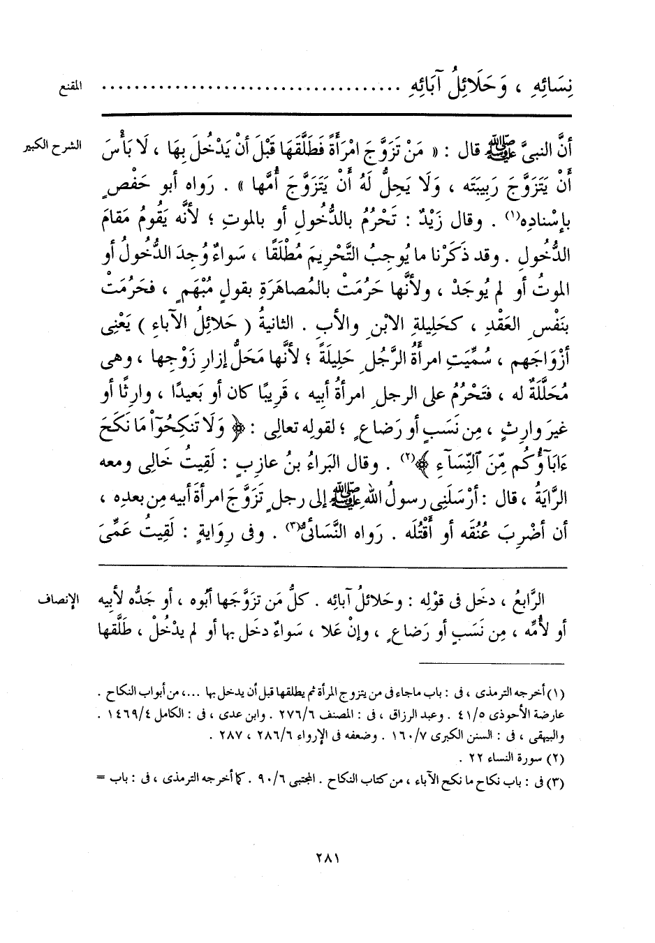 الرابعُ، دخَل في قوْلِه: وحَلائلُ آبائِه. كلّ مَن تزَوَّجَها أبُوه، أو جَدُّه لأبِيه أو لأُمِّه، مِن نَسَبٍ أو رَضاعٍ، وإنْ عَلا، سَواءٌ دخَل بها أو لم يدْخُلْ، طَلَّقها