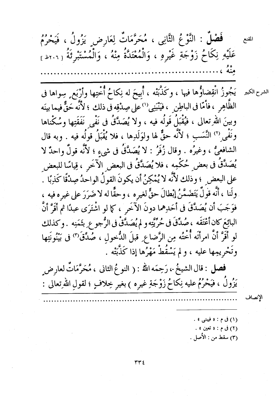 فصل: النَّوْعُ الثَّانِي، مُحَرَّمَات لِعَارِضٍ يَزُولُ، فَيَحرُمُ عَلَيهِ نِكَاحُ زَوْجَةِ غَيرِهِ، وَالْمُعتَدَّةُ مِنْهُ، وَالْمُسْتَبْرئة مِنه،