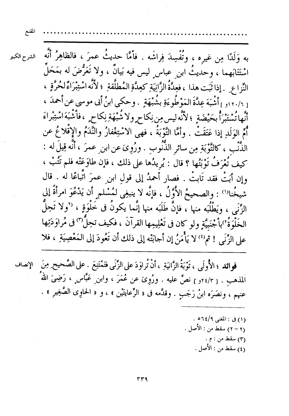 فوائد؛ الأولَى، تَوْبَةُ الزَّانيَةِ، أنْ تُراوَدَ على الزِّنَى فتمتَنِعَ. على الصَّحيحِ مِنَ المذهبِ. نصَّ عليه. ورُوِيَ عن عُمَرَ، وابنِ عَبَّاس، رَضِيَ اللهُ عنهم، ونصَرَه ابنُ رَجَب. وقدَّمه في «الرِّعايتَين»، و «الحاوي الصَّغِيرِ».