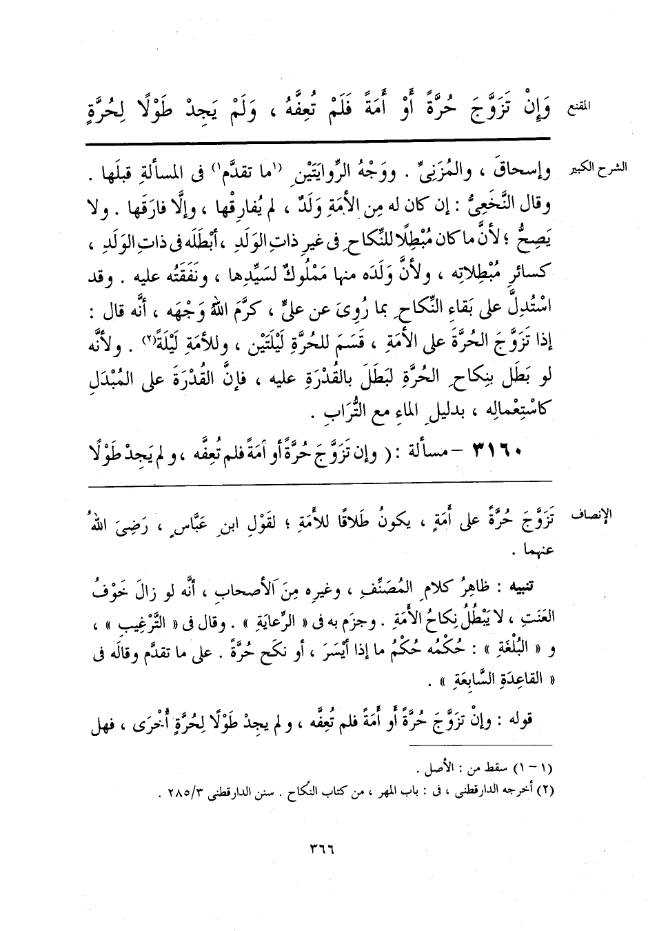 تَزَوَّجَ حُرّةً على أَمَةٍ، يكونُ طَلاقًا للأَمَةِ؛ لقَوْلِ ابنِ عَبَّاسٍ، رَضِيَ اللهُ عنهما.