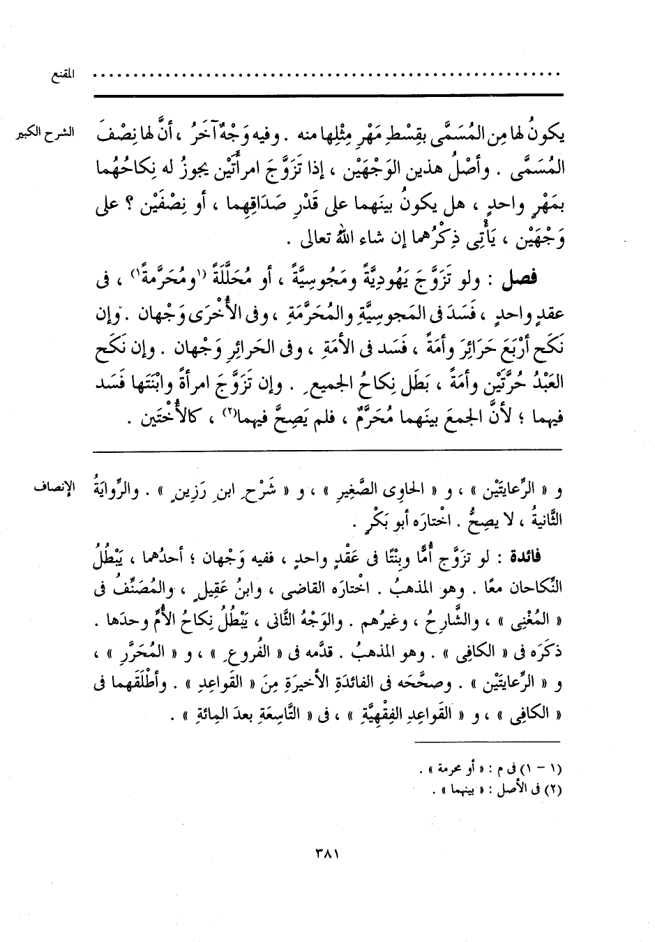 و «الرِّعايتَين»، و «الحاوي الصَّغِيرِ»، و «شَرْحِ ابنِ رَزِينٍ». والروايَةُ الثَّانيةُ، لا يصحُّ. اخْتارَه أبو بَكْر.