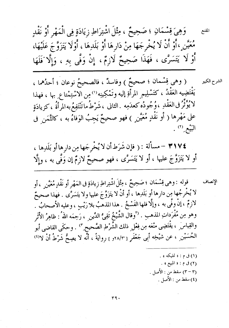 وَهِيَ قِسْمَانِ، صَحِيحٌ، مِثْلَ اشْتِرَاطِ زِيَادَةٍ فِي الْمَهْرِ أو نَقْدٍ مُعَيَّن، أوْ أَن لَا يُخْرِجَهَا مِنْ دَارِهَا أَوْ بَلَدِهَا، أو لَا يَتَزَوَّجَ عَلَيهَا، أوْ لَا يَتَسَرَّى، فَهَذَا صَحِيحٌ لَازِمٌ، إِنْ وَفَّى بِهِ، وَإلَّا فَلَهَا