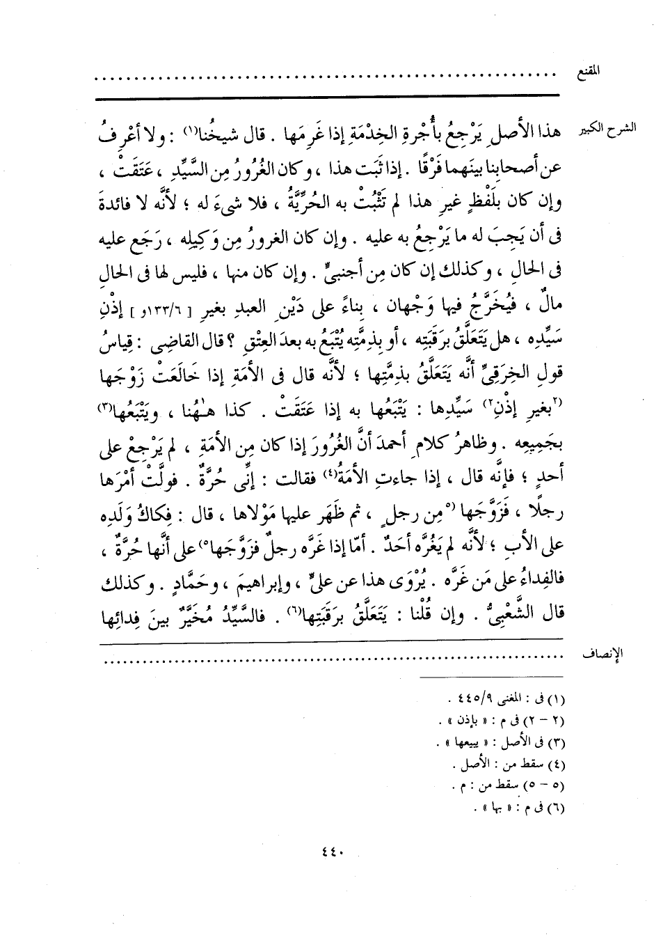 هذا الأصلِ يَرْجِعُ بأُجْرةِ الخِدْمَةِ إذا غَرِمَها. قال شيخُنا (¬1): ولا أعْرِفُ عن أصحابِنا بينَهما فَرْقًا. إذا ثَبَت هذا، وكان الغُرُورُ مِن السَّيِّدِ، عَتَقَت، وإن كان بلَفْظٍ غيرِ هذا لم تَثْبُتْ به الحُرِّيَّةُ، فلا شيءَ له؛ لأنَّه لا فائدةَ في أن يَجِبَ له ما يَرْجِعُ به عليه. وإن كان الغرورُ مِن وَكِيِله، رَجَع عليه في الحالِ، وكذك إن كان مِن أجنبيٍّ. وإن كان منها، فليس لها في الحالِ مالٌ، فيُخَرَّجُ فيها وَجْهان، بناءً على دَينِ العبدِ بغيرِ إذْنِ سَيِّدِه، هل يَتَعَلَّقُ برَقَبَتِه، أو بِذِمًّتِه يُتْبَعُ به بعدَ العِتْقِ؟ قال القاضِي: قِياسُ قولِ الخِرَقِيِّ أنَّه يَتَعَلَّقُ بذِمَّتِها؛ لأنَّه قال في الأمَةِ إذا خَالعَتْ زَوْجَها [بغيرِ إذْنِ] (¬2) سَيِّدِها: يَتْبَعُها به إذا عَتَقَتْ. كذا ههُنا، ويَتْبَعُها (¬3) بجَمِيعِه. وظاهرُ كلام أحمدَ أنَّ الغُرُورَ إذا كان مِن الأمَةِ، لم يَرْجِعْ على أحدٍ؛ فإنَّه قال، إذا جَاءتِ الأمَةُ (¬4) فقالت: إنِّي حُرَّةٌ. فولَّتْ أمْرَها رجلًا، فَزَوَّجَها [مِن رجلٍ، ثم ظَهَر عليها مَوْلاها، قال: فِكاكُ وَلَدِه على الأبِ؛ لأنَّه لم يَغُرَّه أحَدٌ. أمّا إذا غَرَّه رجلٌ فزَوَّجَها] (¬5) على أنَّها حُرَّةٌ، فالفِداءُ على مَن غَرَّه. يُرْوَى هذا عن عليٍّ، وإبراهيمَ، وحَمَّادٍ. وكذلك قال الشَّعْبِيُّ. وإن قُلْنا: يَتَعَلَّقُ برَقَبَتِها (¬6). فالسَّيِّدُ مُخَيَّرٌ بينَ فِدائِها