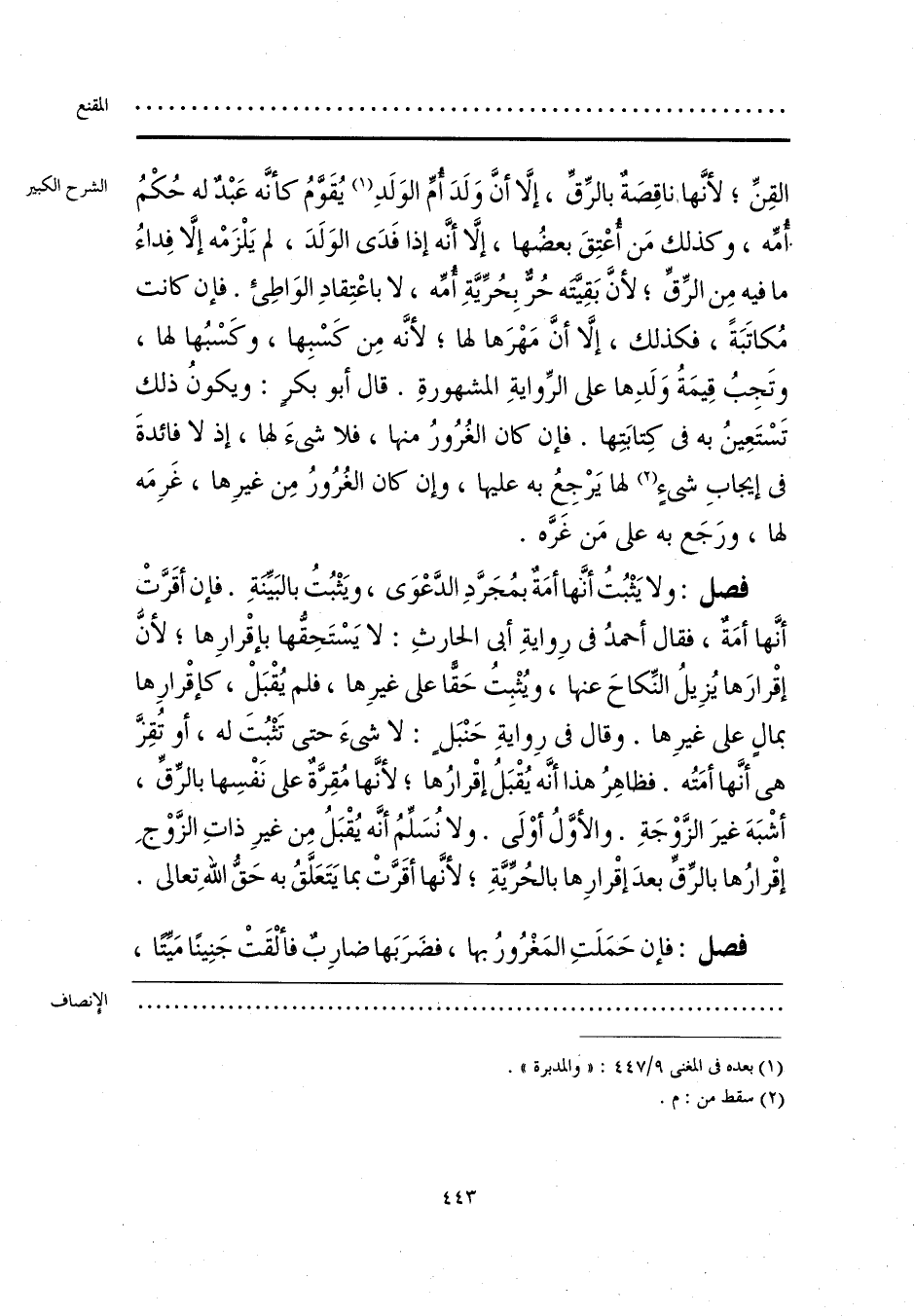 (¬1) بعده في المغني 9/ 447: «والمدبرة».