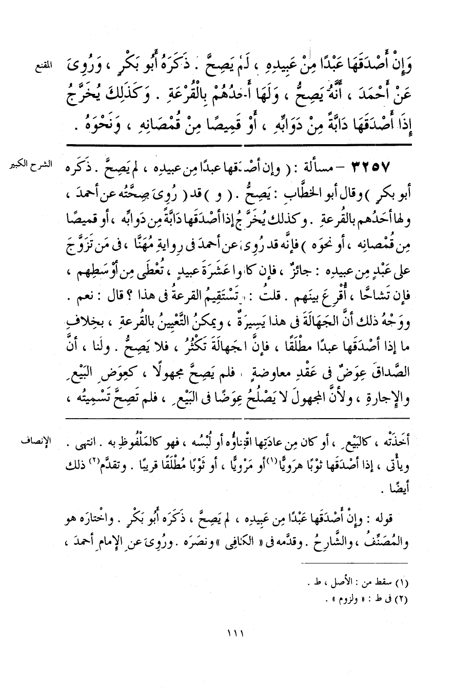 قوله: وإنْ اصدَقَها عَبْدًا مِن عَبِيدِه، لم يَصِحَّ، ذَكَرَه أَبُو بَكْرٍ. واخْتارَه هو والمُصَنِّفُ، والشَّارِحُ. وقدَّمه في «الكافِي» ونصَرَه. ورُوِيَ عنِ الإِمامِ أحمدَ،