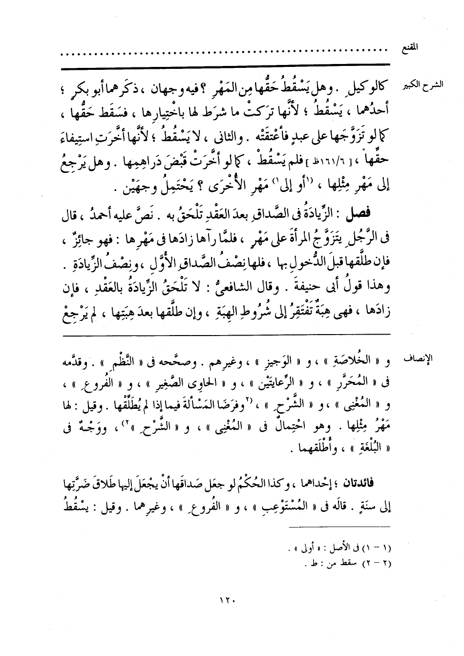 و «الخُلاصَةِ»، و «الوَجيزِ»، وغيرِهم. وصحَّحه في «النَّظْمِ». وقدَّمه في «المُحَرَّرِ»، و «الرِّعايتَين»، و «الحاوي الصَّغِيرِ»، و «الفُروعِ»، و «المُغْنِي»، و «الشَّرْحِ»، [وفرَضَا المَسْألةَ فيما إذا لم يُطَلِّقْها. وقيل: لها مَهْرُ مِثْلِها. وهو احْتِمالٌ في «المُغْنِي»، و «الشَّرْحِ»] (¬1)، ووَجْهٌ في «البُلْغَةِ»، وأطْلَقهما.