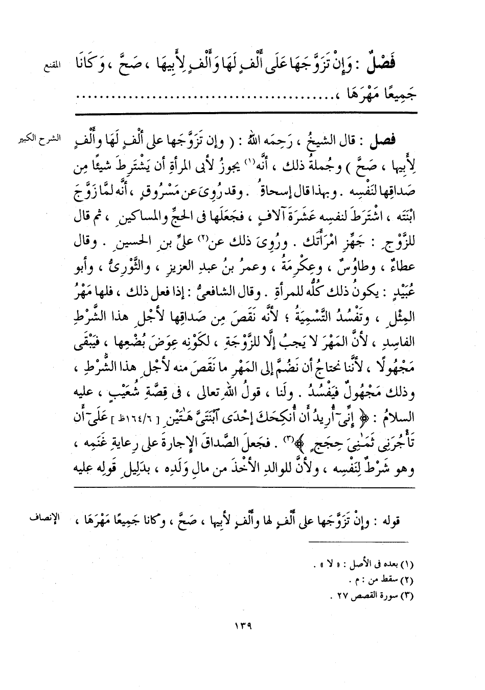 فَصْلٌ: وَإنْ تَزَوَّجَهَا عَلَى أَلْفٍ لَهَا وَأَلْفٍ لِأَبِيهَا، صَحَّ، وَكَانَا جَمِيعًا مَهْرَهَا،