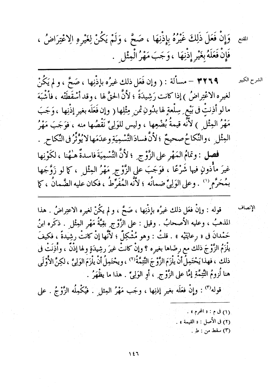 قوله: وإنْ فعَل ذلك غيرُه بإذْنِها، صَحَّ، ولم يكُنْ لغيرِه الاعتِراضُ. هذا المذهبُ، وعليه الأصحابُ. وقيل: على الزَّوْجِ بقِيَّةُ مَهْرِ المِثْلِ. ذكَره ابنُ حَمْدانَ في «رِعايَتَيه». قلتُ: وهو مُشْكِلٌ؛ لأنَّها إنْ كانتْ رشِيدةً، فكيفَ يلْزَمُ الزَّوْجَ ذلك مع رِضَاها بغيرِه؟ وإنْ كانتْ غيرَ رشِيدَةٍ ولها إذْنٌ، وأذِنَتْ في ذلك، فهذا يَحْتَمِلُ أنْ يلْزَمَ الزَّوْجَ التَّتِمَّةُ (¬1)، ويحْتَمِلُ أنْ يلْزَمَ الوَلِيَّ، لكِنَّ الأوْلَى هنا لُزومُ التَّتِمَّةِ إمَّا على الزَّوْجِ، أو الوَلِيِّ. هذا ما يظْهَرُ.