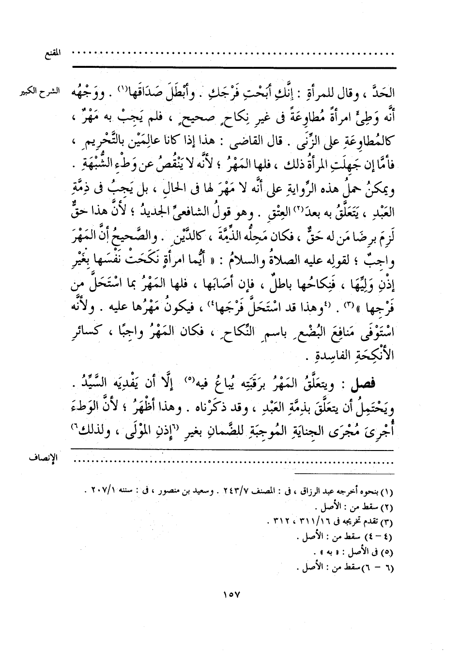 الحَدَّ، وقال للمرأةِ: إنَّكِ أربحْتِ فَرْجَكِ. وأبْطَلَ صَدَاقَها (¬1). ووَجْهُه أنَّه وَطِئَ امرأةً مُطاوعَةً في غيرِ نِكاحٍ صحيحٍ، فلم يَجِبْ به مَهْرٌ، كالمُطاوعَةِ على الزِّنى. قال القاضي: هذا إذا كانا عالِمَين بالتَّحْرِيمِ، فأمَّا إن جَهِلَتِ المرأةُ ذلك، فلها المَهْرُ، لأنَّه لا يَنْقُصُ عن وَطْءِ الشُّبْهَةِ. ويمكنُ حملُ هذه الروايةِ على أنَّه لا مَهْرَ لها في الحال، بل يَجِبُ في ذِمَّةِ العَبْدِ، يَتَعَلَّقُ به بعدَ (¬2) العِتْقِ. وهو قولُ الشافعيِّ الجديدُ؛ لأنَّ هذا حقٌّ لَزِمَ برِضَا مَن له حَقٌّ، فكان مَحِلُّه الذِّمَّةَ، كالدَّينِ. والصَّحيحُ أنَّ المهْرَ واجِبٌ؛ لقولِه عليه الصلاةُ والسلامُ: «أيُّما امرأةٍ نَكَحَتْ نَفْسَها بِغَيرِ إذْنِ وَلِيِّهَا، فَنِكاحُها باطلٌ، فإن أصَابَها، فلها المَهْرُ بما اسْتَحَلَّ منِ فَرْجِها» (¬3). [وهذا قد اسْتَحَلَّ فَرْجَها] (¬4)، فيكونُ مَهْرُها عليه. ولأنَّه اسْتَوْفَى مَنافِعَ البُضْعِ باسمِ النِّكاحِ، فكان المَهْرُ واجِبًا، كسائرِ الأنْكِحَةِ الفاسِدةِ.