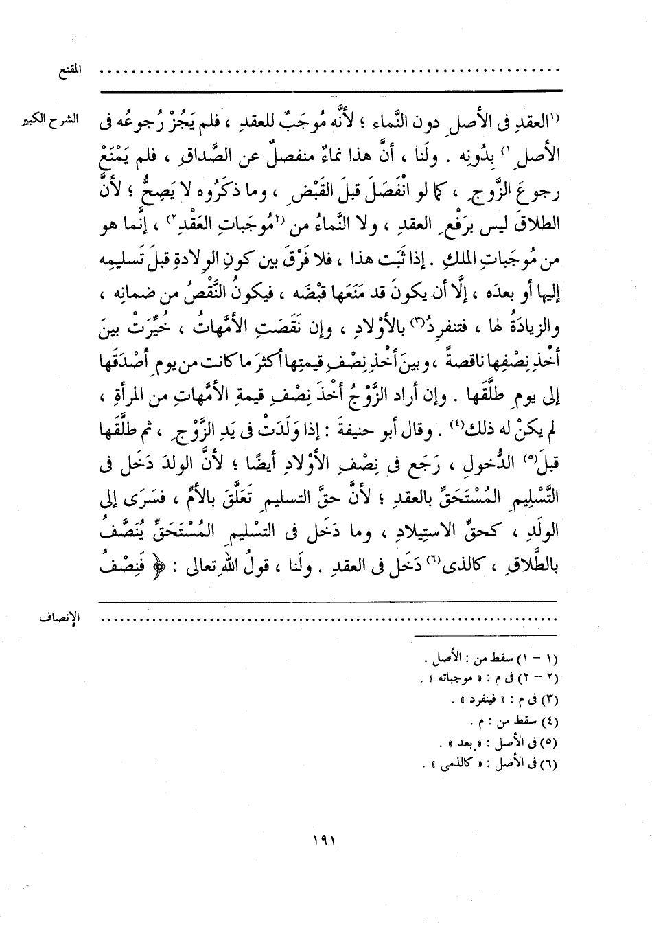 [العقدِ في الأصلِ دون النَّماء؛ لأنَّه مُوجَبٌ للعقدِ، فلم يَجُزْ رُجوعُه في الأصلِ] (¬1) بِدُونِه. ولَنا، أنَّ هذا نماءٌ منفصلٌ عن الصَّداقِ، فلم يَمْنَعْ رجوعَ الزَّوجِ، كما لو انْفَصَلَ قبلَ القَبْضِ، وما ذكَرُوه لا يَصِحُّ؛ لأَنَّ الطلاق ليس برَفْعِ العقدِ، ولا النَّماءُ من [مُوجَباتِ العَقْدِ] (¬2)، إنَّما هو من مُوجَباتِ الملكِ. إذا ثَبَت هذا، فلا فَرْقَ بين كونِ الوِلادةِ قبلَ تَسليمِه إليها أو بعدَه، إلَّا أنَّ يكونَ قد مَنَعَها قبْضَه، فيكونُ النَّقْصُ من ضمانِه، والزيادَةُ لها، فتنفرِدُ (¬3) بالأوْلادِ، وإن نَقَصَتِ الأمَّهاتُ، خُيِّرَتْ بينَ أخْذِ نِصْفِها ناقصةً، وبينَ أخْذِ نِصْفِ قيمتِها أكثرَ ما كانت من يومِ أصْدَقَها إلى يومِ طلَّقَها. وإن أراد الزَّوْجُ أخْذَ نِصْفِ قيمةِ الأمَّهاتِ من المرأةِ، لم يكنْ له ذلك (¬4). وقال أبو حنيفةَ: إذا وَلَدَتْ في يَدِ الزَّوْجَ، ثم طلَّقَها قبلَ (¬5) الدُّخولِ، رَجَع في نِصْفِ الأوْلادِ أيضًا؛ لأَنَّ الولدَ دَخَل في التَّسْلِيمِ المُسْتَحَقِّ بالعقدِ؛ لأَنَّ حقَّ التسليمِ تَعَلَّقَ بالأمِّ، فسَرَى إلى الولَدِ، كحقِّ الاستِيلادِ، وما دَخَل في التسْليمِ المُسْتَحَقِّ يُنَصَّفُ بالطَّلاقِ، كالذى (¬6) دَخَل في العقدِ. ولَنا، قولُ اللَّهِ تعالى: {فَنِصْفُ