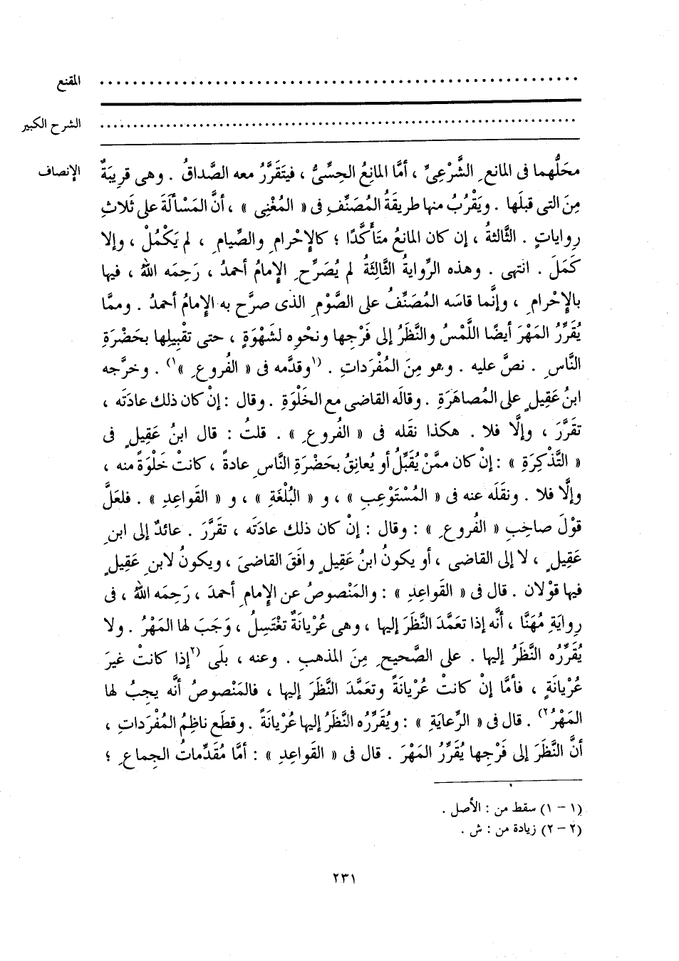 محَلُّهما فى المانعِ الشَّرعِىِّ، أمَّا المانِعُ الحِسِّىُّ، فيتَقَرَّرُ معه الصَّداقُ. وهى قرِيبَةٌ مِنَ التى قبلَها. ويَقْرُبُ منها طريقَةُ المُصَنِّفِ فى «المُغْنِى»، أنَّ المَسْألَةَ على ثَلاثِ رِواياتٍ. الثَّالثةُ، إن كان المانعُ متَأَكِّدًا؛ كالإِحْرامِ والصِّيامِ، لم يَكْمُلْ، وإلا كَمَلَ. انتهى. وهذه الرِّوايةُ الثَّالِثَةُ لم يُصَرحِ الإِمامُ أحمدُ، رَحِمَه اللَّه، فيها بالإِحْرامِ، وإنَّما قاسَه المُصَنِّفُ على الصَّوْمِ الذى صرَّح به الإِمامُ أحمدُ. وممَّا يُقَرِّرُ المَهْرَ أيضًا اللَّمْسُ والنَّظَرُ إلى فَرجِها ونحْوِه لشَهْوَةٍ، حتى تقْبِيلها بحَضْرَةِ النَّاسِ. نصَّ عليه. وهو مِنَ المُفْرَداتِ. [وقدَّمه فى «الفُروعِ»] (¬1). وخرَّجه ابنُ عَقِيلٍ على المُصاهَرَةِ. وقالَه القاضى مع الخَلْوَةِ. وقال: إنْ كان ذلك عادَتَه، تقَرَّرَ، وإلَّا فلا. هكذا نقَله فى «الفُروعِ». قلتُ: قال ابنُ عَقِيلٍ فى «التَّذْكِرَةِ»: إنْ كان ممَّنْ يُقَبِّلُ أو يُعانِقُ بحَضْرَةِ النَّاسِ عادةً، كانتْ خَلْوَةً منه، وإلَّا فلا. ونقَلَه عنه فى «المُسْتَوْعِبِ»، و «البُلْغَةِ»، و «القَواعِدِ». فلعَلَّ قوْلَ صاحبِ «الفُروعِ»: وقال: إنْ كان ذلك عادَتَه، تقَرَّرَ. عائدٌ إلى ابنِ عَقِيلٍ، لا إلى القاضى، أو يكونُ ابنُ عقِيلٍ وافَقَ القاضىَ، ويكونُ لابنِ عَقِيلٍ فيها قوْلان. قال فى «القَواعِدِ»: والمَنْصوصُ عن الإِمامِ أحمدَ، رَحِمَه اللَّهُ، فى رِوايَةِ مُهَنَّا، أنَّه إذا تعَمَّدَ النَّظَرَ إليها، وهى عُرْيَانَة تغْتَسِلُ، وَجَبَ لها المَهْرُ. ولا يُقَرِّرُه النَّظَرُ إليها. على الصَّحيحِ مِنَ المذهبِ. وعنه، بلَى [إذا كانتْ غيرَ عُرْيانَةٍ، فأمَّا إنْ كانتْ عُريانَة وتعَمَّدَ النَّظَرَ إليها، فالمَنْصوصُ أنَّه يجِبُ لها المَهْرُ] (¬2). قال فى «الرِّعايَةِ»: ويُقَرِّره النَّظَرُ إليها عُريانَة. وقطَع ناظِمُ المُفْرَداتِ، أنَّ النَّظَرَ إلى فَرجِها يُقَرِّرُ المَهْرَ. قال فى «القَواعِدِ»: أمَّا مُقَدِّماتُ الجِماعِ؛