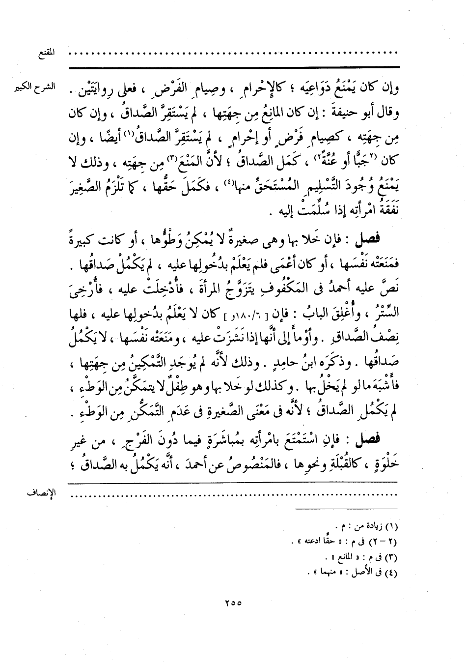 وإن كان يَمْنَعُ دَوَاعِيَه؛ كالإِحْرامِ، وصِيامِ الفرْضِ، فعلى رِوايَتَيْن. وقال أبو حنيفةَ: إن كان المانِعُ مِن جِهَتِها، لم يَسْتَقِرَّ الصَّداقُ، وإن كان مِن جهَتِه، كصِيامِ فرْضٍ من أو إحرامٍ، لم يَسْتَقِرَّ الصَّداقُ (¬1) أيضًا، وإن كان [جَبًّا أو عُنَّةً] (¬2)، كَمَل الصَّداقُ؛ لأَنَّ المَنْعَ (¬3) مِن جِهَتِه، وذلك لا يَمْنَعُ وُجُودَ التَّسْلِيمِ المُسْتَحَقِّ منها (¬4)، فكَمَلَ حَقّها، كما تَلْزَمُ الصَّغِيرَ نَفَقَةُ امْرأتِه إذا سُلِّمَتْ إليه.
