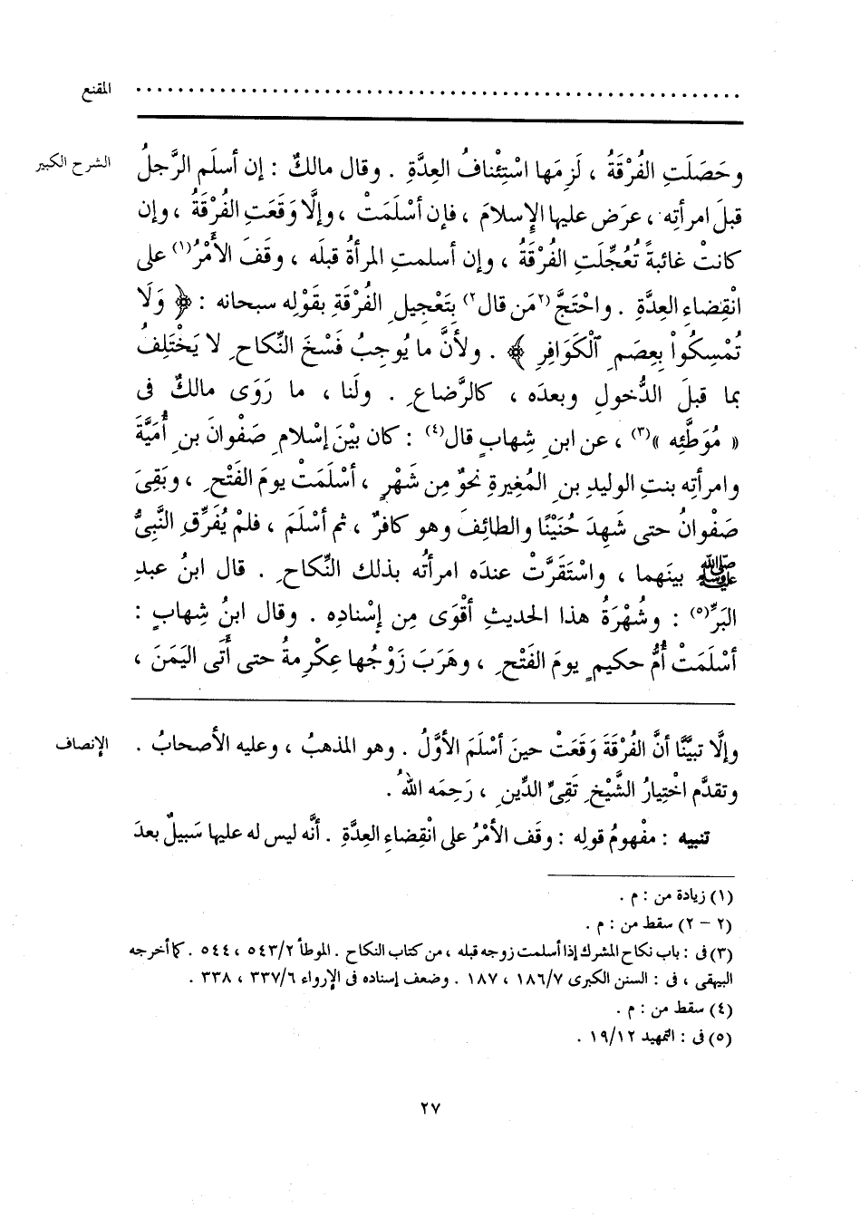 وإلَّا تبيَّنَّا أنَّ الفُرْقَةَ وَقَعَتْ حينَ أسْلَمَ الأوَّلُ. وهو المذهبُ، وعليه الأصحابُ. وتقدَّم اخْتِيارُ الشَّيخِ تَقِيِّ الدِّينِ، رَحِمَه اللهُ.