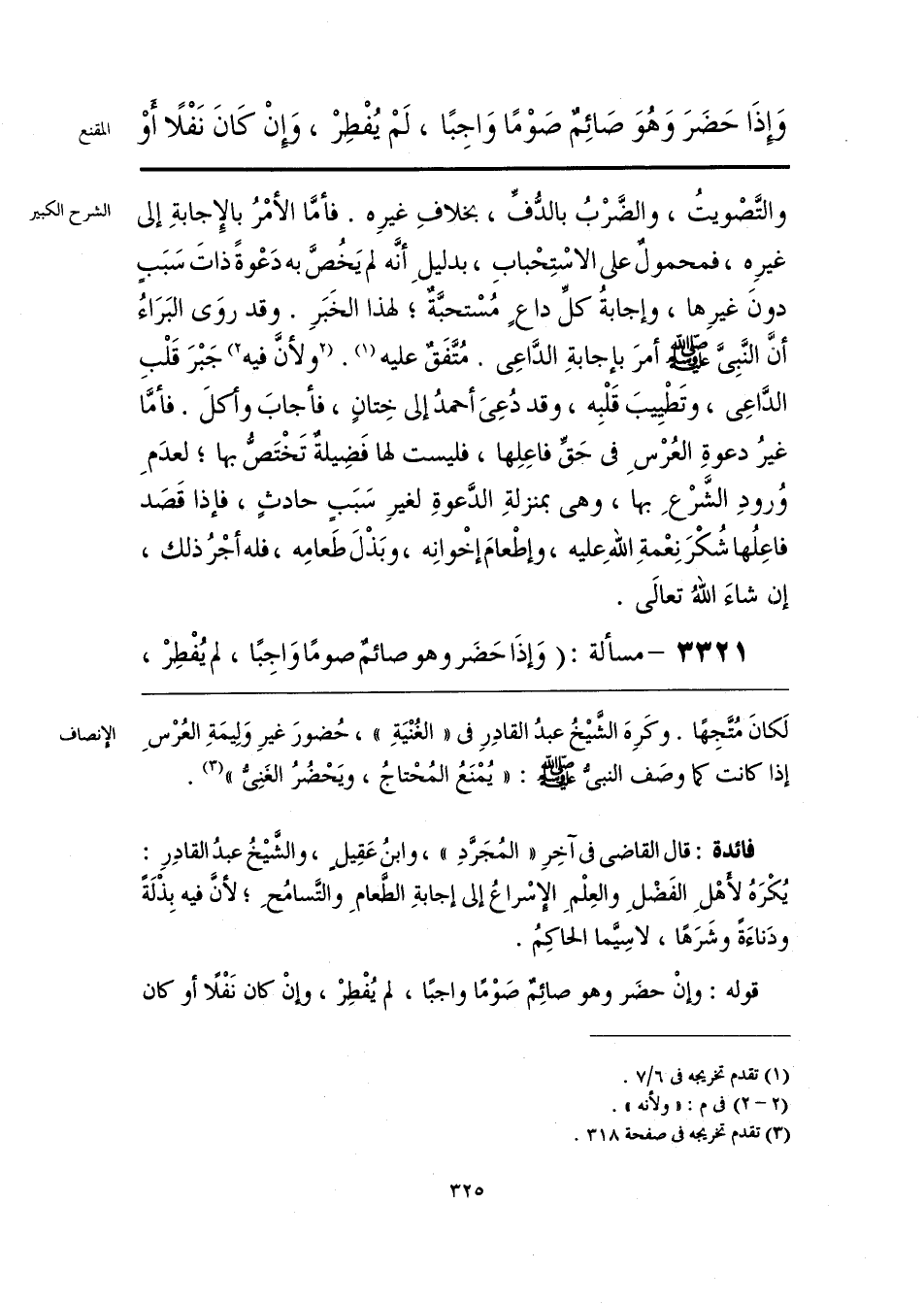 قوله: وإنْ حضَر وهو صائِمٌ صَوْمًا واجبًا، لم يُفْطِرْ، وإنْ كان نَفْلًا أو كان