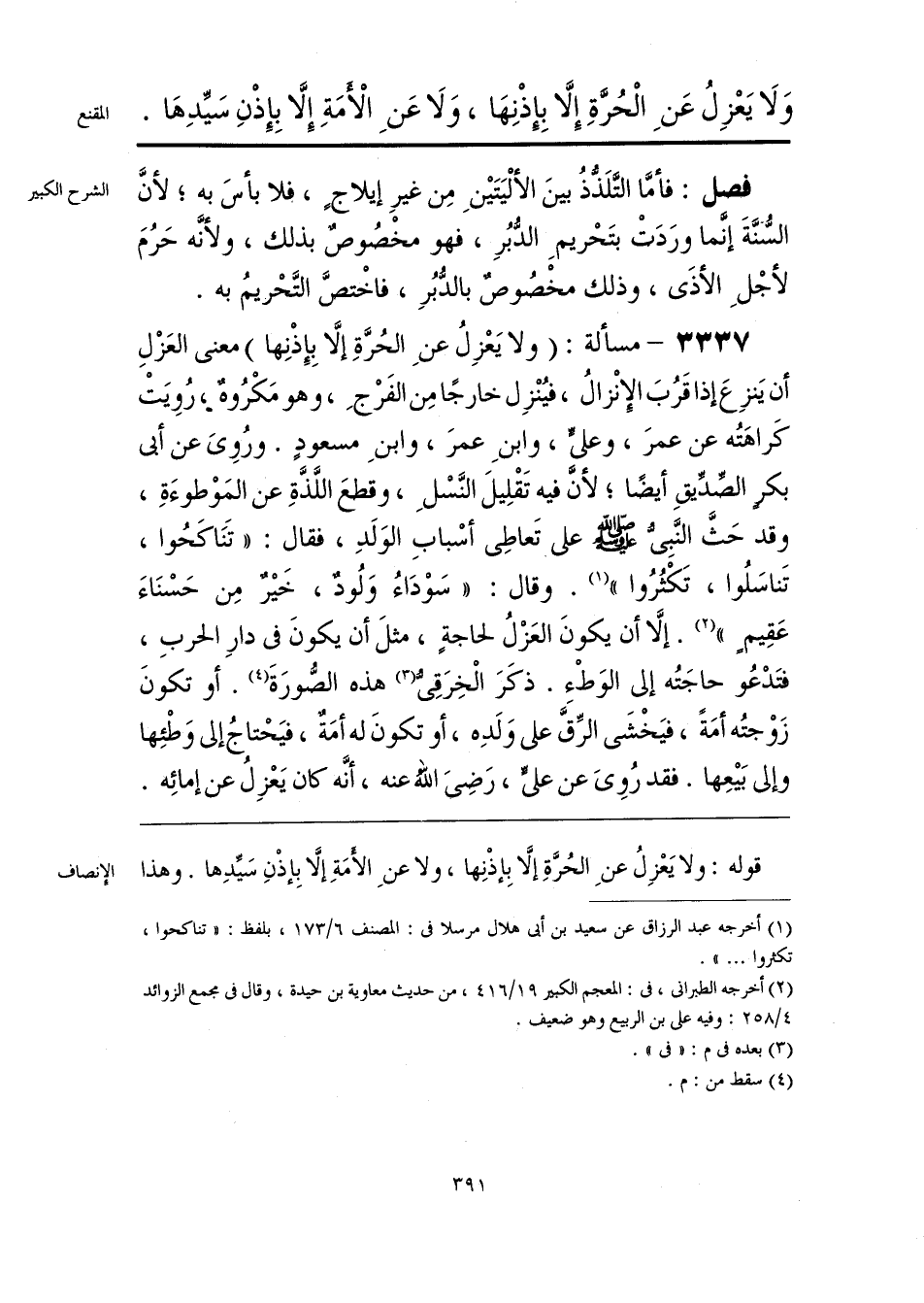 قوله: ولا يَعْزِلُ عنِ الحُرَّةِ إلَّا بِإذْنِها، ولا عنِ الأَمَةِ إلَّا بِإذْنِ سَيِّدِها. وهذا