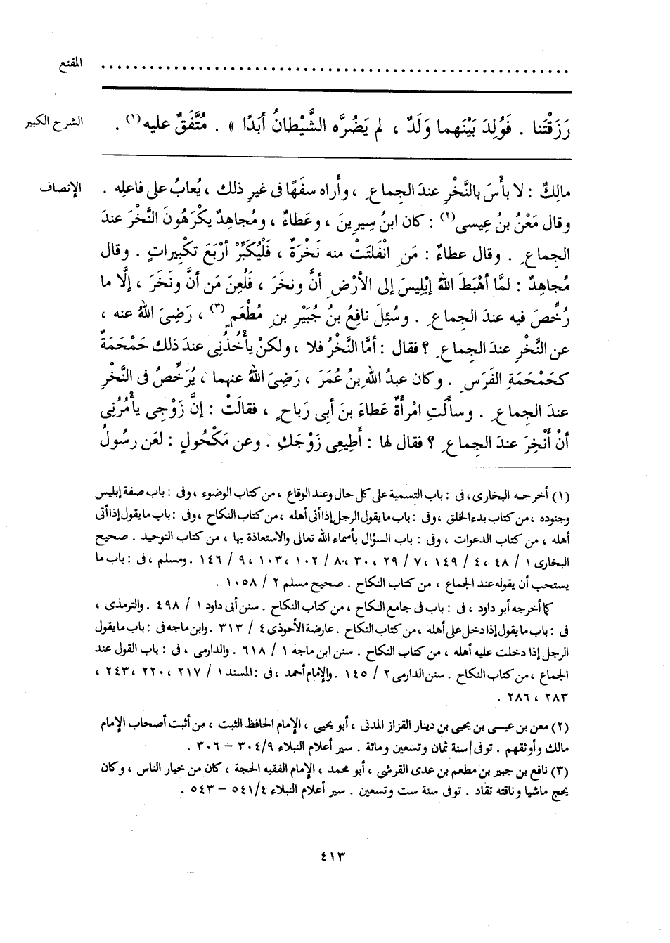 مالِكٌ: لا بأْسَ بالنَّخْرِ عندَ الجِماعِ، وأَراه سفَهًا فى غيرِ ذلك، يُعابُ على فاعلِه. وقال مَعْنُ بنُ عِيسى (¬1): كان ابنُ سِيرِينَ، وِعَطاءٌ، ومُجاهِدٌ يكْرَهُونَ النَّخْرَ عندَ الجِماعِ. وقال عطاء: مَنِ انْفَلتَتْ منه نَخْرَةٌ، فَلْيُكَبِّرْ أرْبَعَ تكْبِيراتٍ. وقال مُجاهِدٌ: لمَّا أهْبَطَ اللَّهُ إبْلِيسَ إلى الأرْضِ أنَّ ونخَرَ، فَلُعِنَ مَن أنَّ ونَخَرَ، إلَّا ما رُخِّصَ فيه عندَ الجِماعِ. وسُئِلَ نافِعُ بنُ جُبَيْرِ بنِ مُطْعَمٍ (¬2)، رَضِىَ اللَّهُ عنه، عن النَّخْرِ عندَ الجِماعِ؟ فقال: أما النَّخْرُ فلا، ولكنْ يأْخُذُنِى عندَ ذلك حَمْحَمَةٌ كحَمْحَمَةِ الفَرَسِ. وكان عبدُ اللَّهِ بنُ عُمَرَ، رَضِىَ اللَّهُ عنهما، يُرَخِّصُ فى النَّخْرِ عندَ الجِماعِ. وسأَلَتِ امْرأةٌ عَطاءَ بنَ أبِى رَباحٍ، فقالَتْ: إنَّ زَوْجِى يأْمُرُنِى أَنْ أَنْخِرَ عندَ الجِماعِ؟ فقال لها: أَطِيعِى زَوْجَكِ. وعن مَكْحُولٍ: لعَن رسُولُ