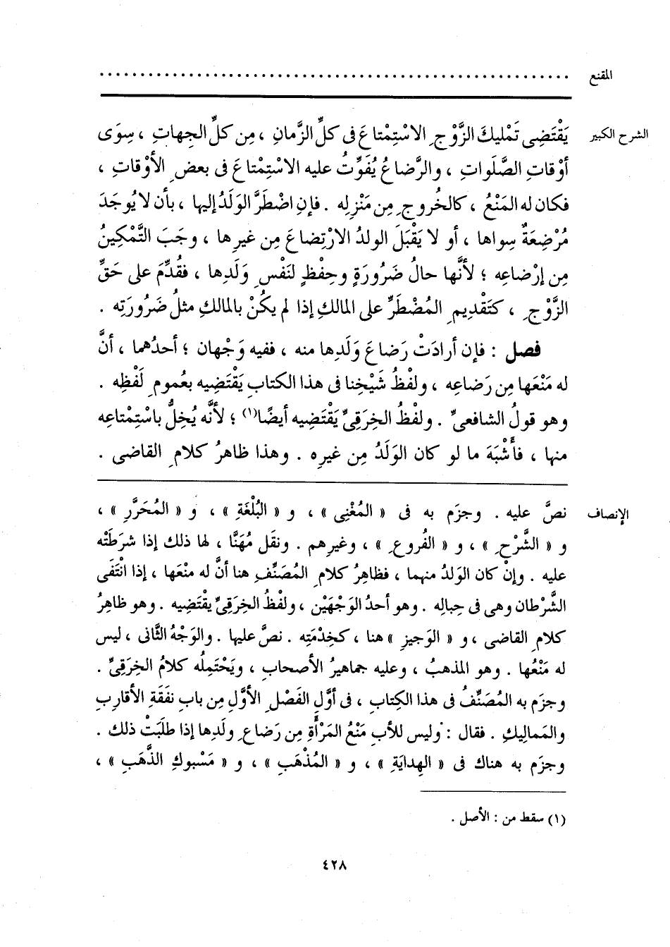 نصَّ عليه. وجزَم به فى «المُغْنِى»، و «البُلْغَةِ»، و «المُحَرَّرِ»، و «الشَّرْحِ»، و «الفُروعِ»، وغيرِهم. ونقَل مُهَنَّا، لها ذلك إذا شرَطَتْه عليه. وإنْ كان الوَلدُ منهما، فظاهِرُ كلامِ المُصَنِّف هنا أنَّ له منْعَها، إذا انْتَفَى الشَّرْطان وهى فى حِبالِه. وهو أحدُ الوَجْهَيْن، ولفْظ الخِرَقِىِّ يقْتَضِيه. وهو ظاهِرُ كلامِ القاضى، و «الوَجيزِ» هنا، كخِدْمَتِه. نصَّ عليها. والوَجْهُ الثانى، ليس له مَنْعُها. وهو المذهبُ، وعليه جماهيرُ الأصحابِ، ويَحْتَمِلُه كلامُ الخِرَقِىِّ. وجزَم به المُصَنِّفُ فى هذا الكِتابِ، فى أوَّل الفَصْلِ الأَوَّلِ مِن بابِ نفَقَةِ الأقارِبِ والمَمالِيكِ. فقال: وليس للأبِ مَنْعُ المَرْأَةِ مِن رَضاعِ ولَدِها إذا طلَبَتْ ذلك. وجزَم به هناك فى «الهِدايَةِ»، و «المُذْهَبِ»، و «مَسْبوكِ الذَّهَبِ»،