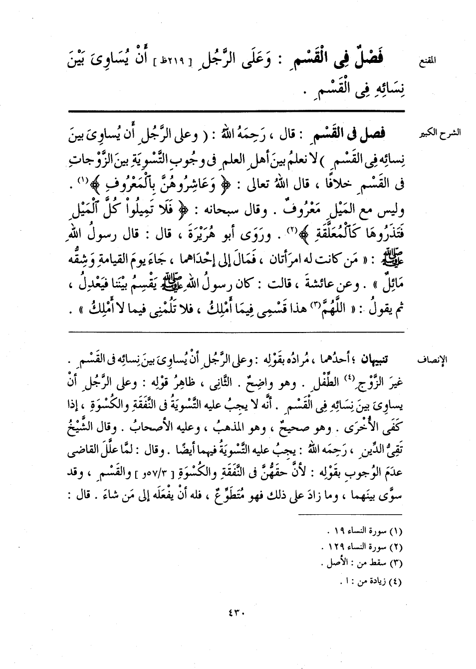 فَصْلٌ فِى الْقَسْمِ: وَعَلَى الرَّجُلِ أَنْ يُسَاوِىَ بَيْنَ نِسَائِهِ فِى الْقَسْمِ.