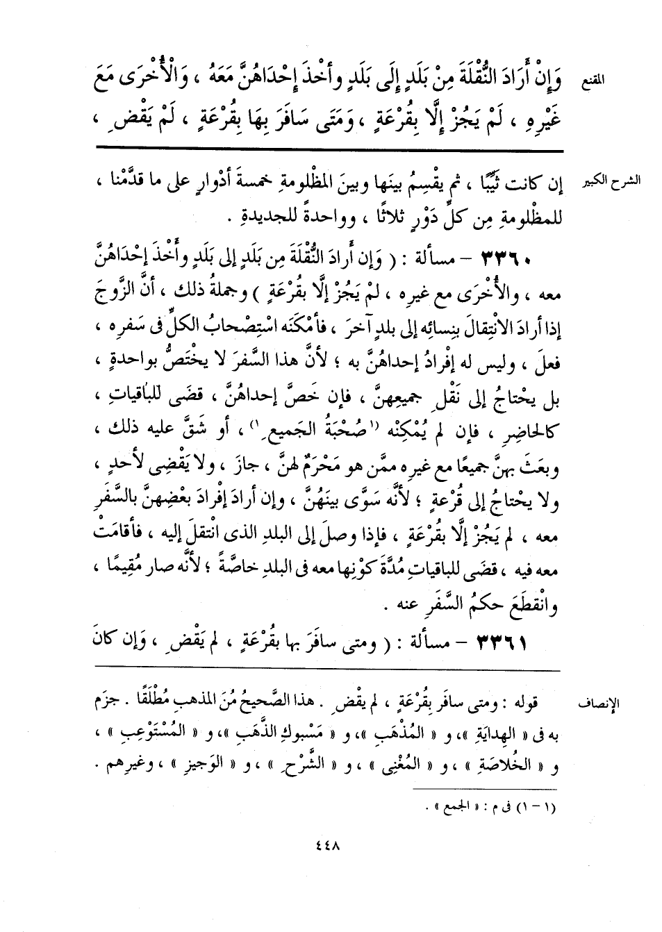 قوله: ومتى سافَر بِقُرْعَةٍ، لم يقْضِ. هذا الصَّحيحُ مُنَ المذهبِ مُطْلَقًا. جزَم به فى «الهِدايَةِ»، و «المُذْهَبِ»، و «مَسْبوكِ الذَّهَبِ»، و «المُسْتَوْعِبِ»، و «الخُلاصَةِ»، و «المُغْنِى»، و «الشَّرْحِ»، و «الوَجيزِ»، وغيرِهم.