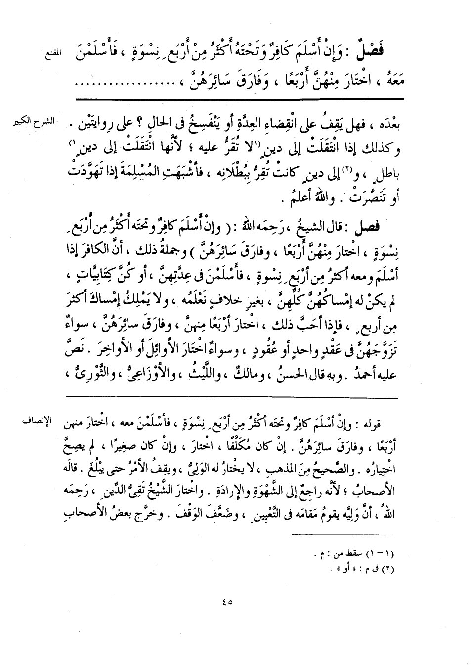 فَصْلٌ: وَإنْ أَسْلَمَ كَافِرٌ وَتَحْتَهُ أَكْثَرُ مِنْ أرْبَعِ نِسْوَةٍ، فَأَسْلَمْنَ مَعَهُ، اخْتَارَ مِنْهُنَّ أَرْبَعًا، وَفَارَقَ سَائِرَهُنَّ،