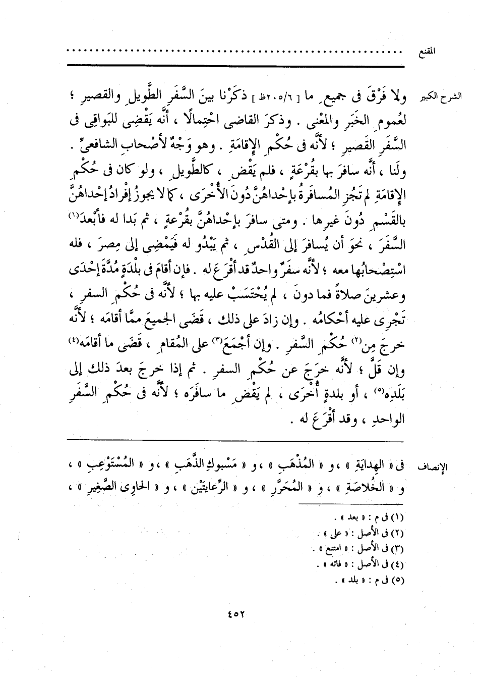 فى «الهِدايَةِ»، و «المُذْهَبِ»، و «مَسْبوكِ الذَّهَبِ»، و «المُسْتَوْعِبِ»، و «الخُلاصَةِ»، و «المُحَرَّرِ»، و «الرِّعايتَيْن»، و «الحاوِى الصَّغِيرِ»،