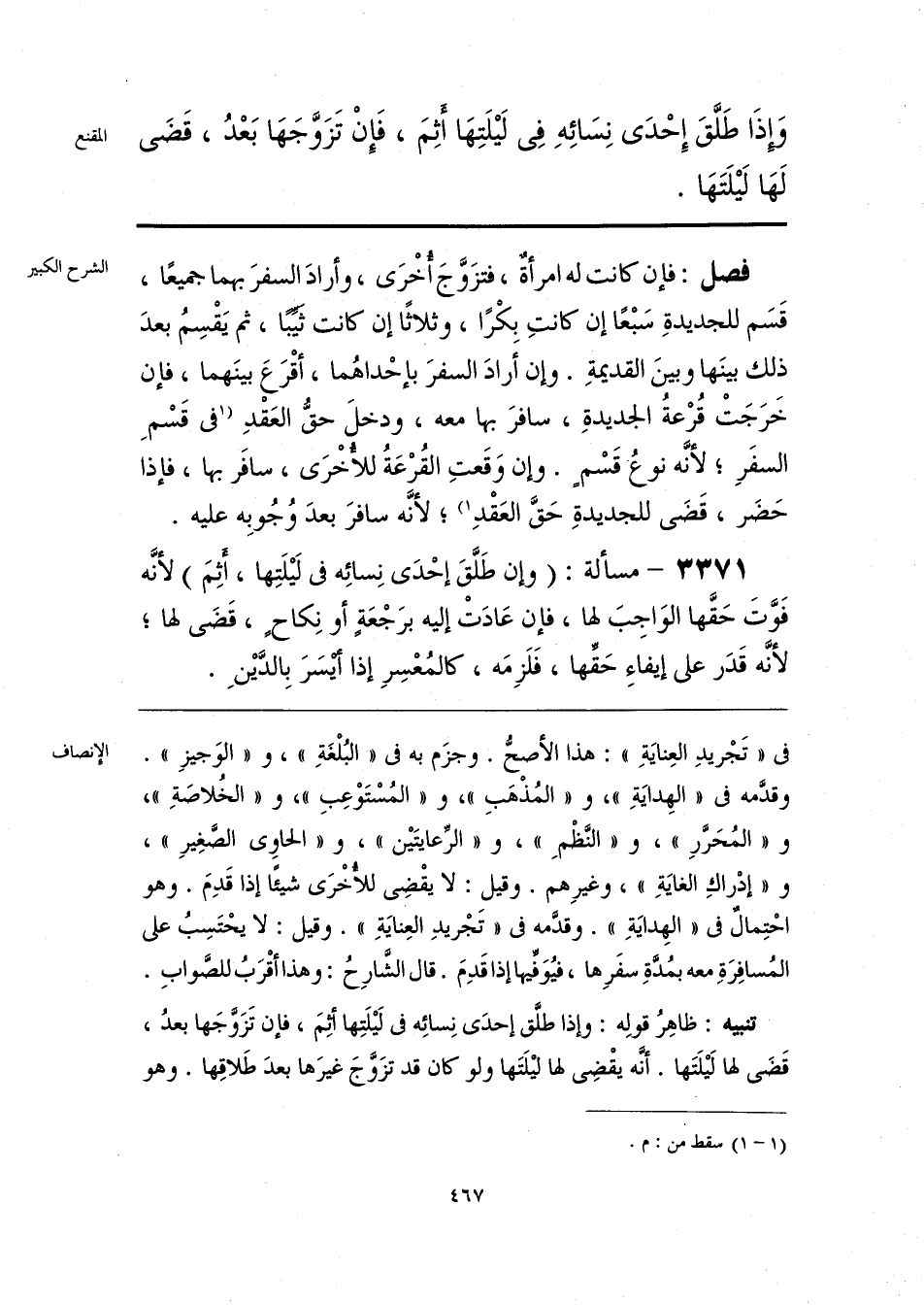 تنبيه: ظاهِرُ قولِه: وإذا طلَّق إحدَى نِسائِه فى لَيْلَتِها أثِمَ، فإن تَزَوَّجَها بعدُ، قَضَى لها لَيْلَتَها. أنَّه يقْضِى لها ليْلَتَها ولو كان قد تزَوجَ غيرَها بعدَ طَلاقِها. وهو