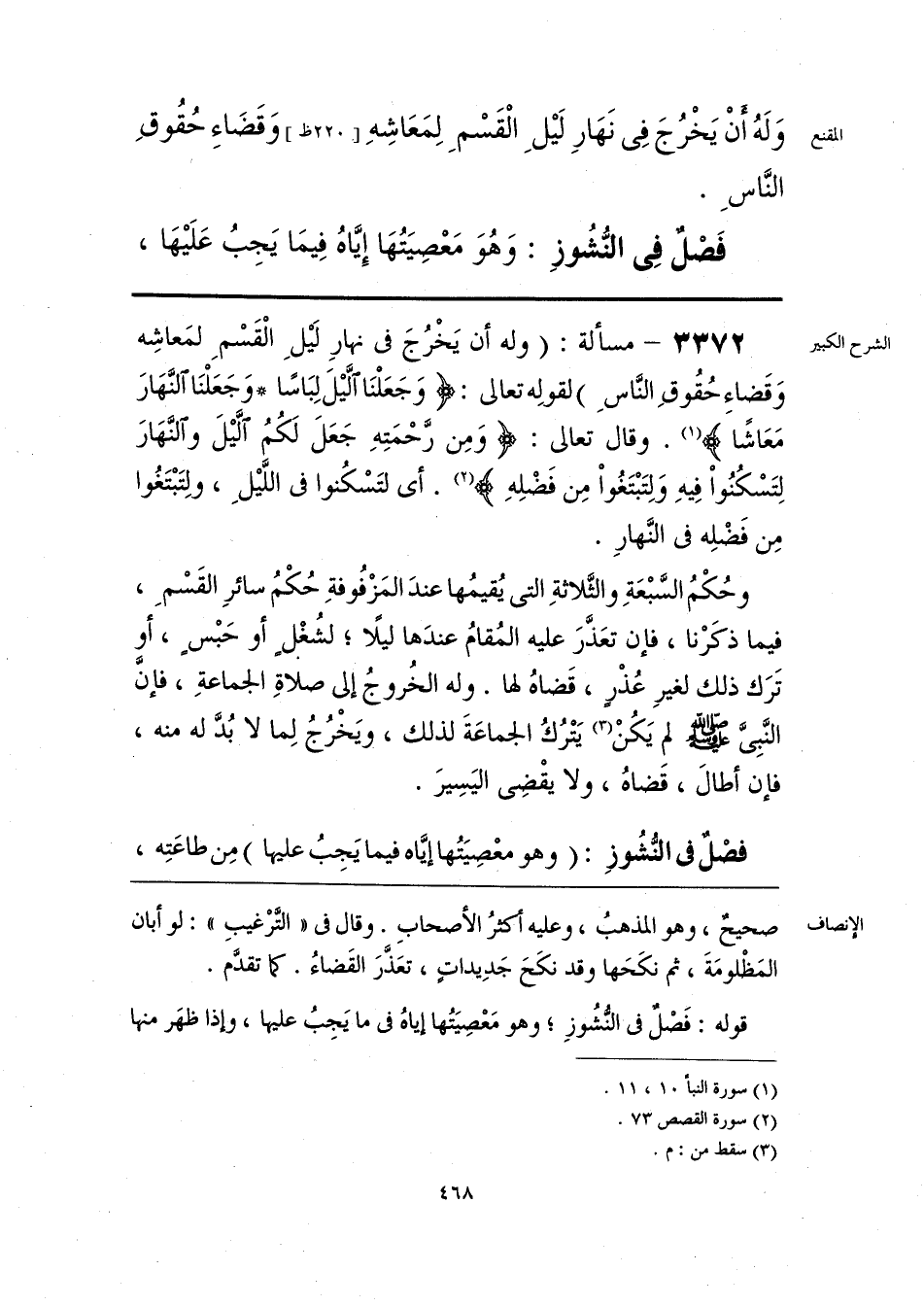 قوله: فَصْلٌ فى النُّشُوزِ؛ وهو مَعْصِيَتُها إياهُ فى ما يَجِبُ عليها، وإذا ظهَر منها