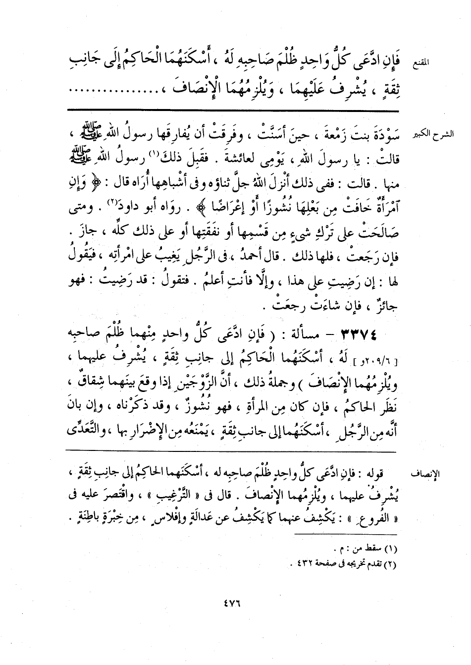 فَإِنِ ادَّعَى كُلُّ وَاحِدٍ ظُلْمَ صَاحِبِهِ لَهُ، أَسْكَنَهُمَا الْحَاكِمُ إِلَى جَانِبِ ثِقَةٍ، يُشْرِفُ عَلَيْهِمَا، وَيُلزِمُهُمَا الإِنْصَافَ،