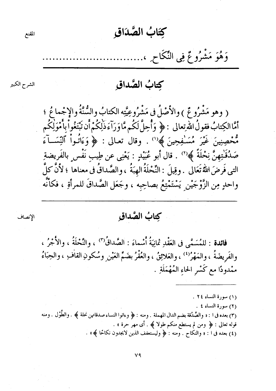(¬1) بعده في ا: «والصَّدُقة بضم الدال المهملة. ومنه: {وَآتُوا النِّسَاءَ صَدُقَاتِهِنَّ نِحْلَةً}. والطَّوْل. ومنه قوله تعالى: {وَمَنْ لَمْ يَسْتَطِعْ مِنْكُمْ طَوْلًا}. أي مهر حرة».