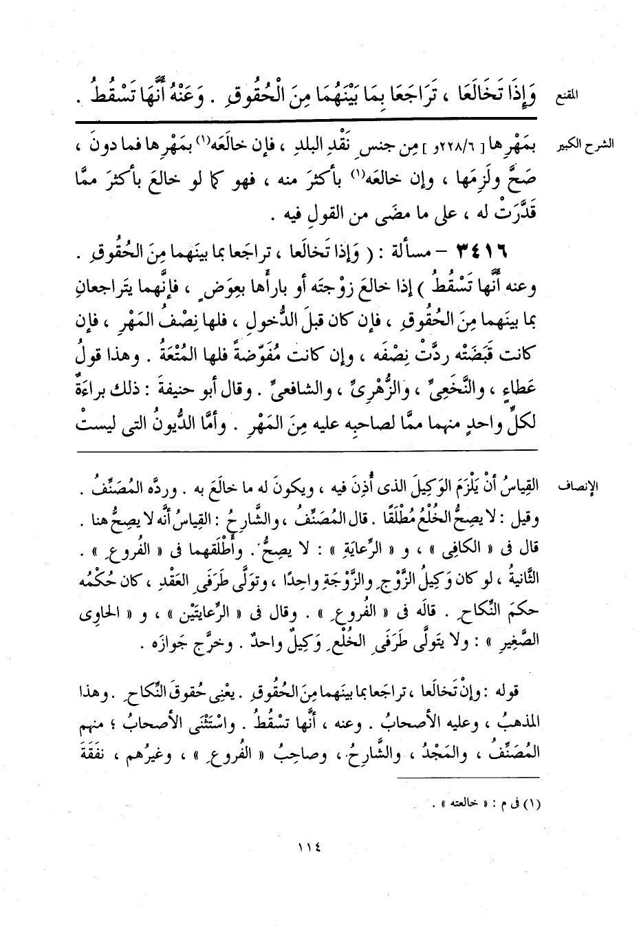 قوله: وإنْ تَخالَعا، تراجَعا بما بينَهما مِنَ الحُقُوقِ. يعْنِى حُقوقَ النِّكاحِ. وهذا المذهبُ، وعليه الأصحابُ. وعنه، أنَّها تسْقُطُ. واسْتَثْنَى الأصحابُ؛ منهم المُصَنِّفُ، والمَجْدُ، والشَّارِحُ، وصاحِبُ «الفُروعِ»، وغيرُهم، نفَقَةَ