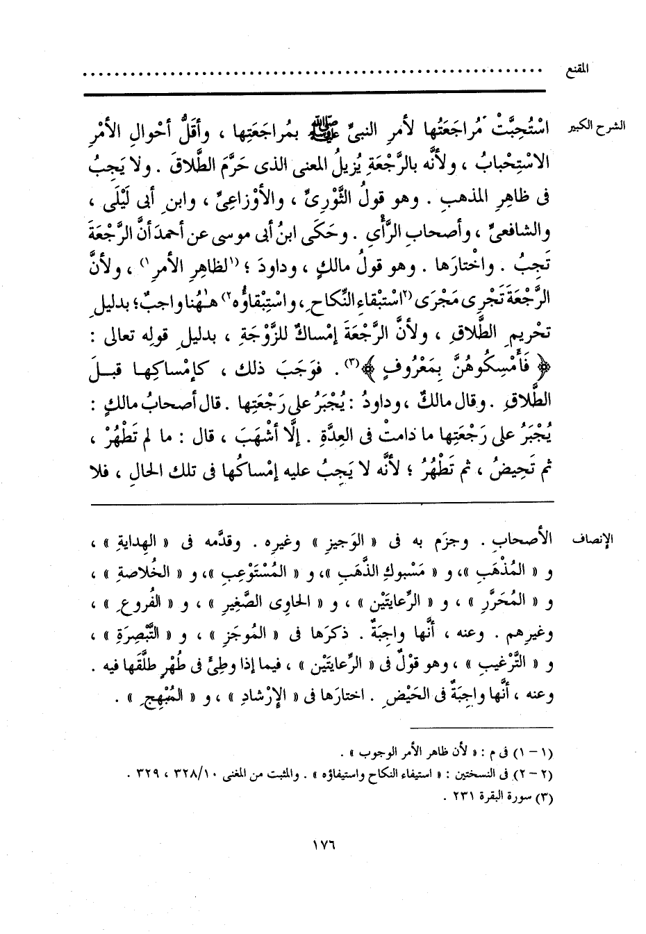 الأصحابِ. وجزَم به فى «الوَجيزِ» وغيرِه. وقدَّمه فى «الهِدايَةِ»، و «المُذْهَبِ»، و «مَسْبوكِ الذَّهَبِ»، و «المُسْتَوْعِبِ»، و «الخُلاصةِ»، و «المُحَرَّرِ»، و «الرِّعايتَيْن»، و «الحاوِى الصَّغِيرِ»، و «الفُروعِ»، وغيرهم. وعنه، أنَّها واجِبَةٌ. ذكرَها فى «المُوجَزِ»، و «التَّبْصِرَةِ»، و «التَّرْغيبِ»، وهو قوْلٌ فى «الرِّعايتَيْن»، فيما إذا وطِئَ فى طُهْرٍ طلَّقَها فيه. وعنه، أنَّها واجِبَةٌ فى الحَيْضِ. اختارَها فى «الإِرْشادِ»، و «المُبْهِجِ».