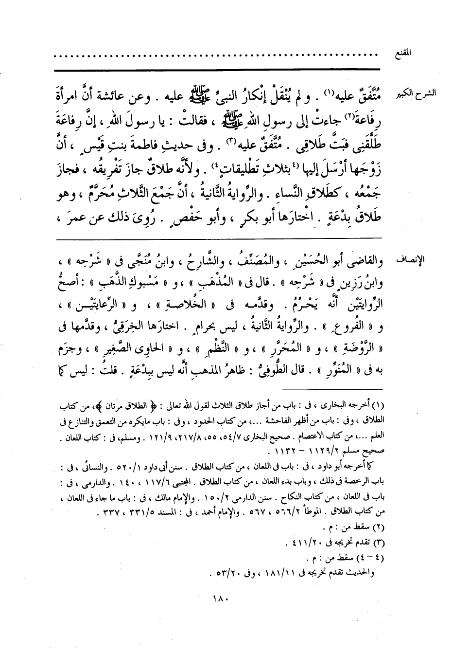 والقاضى أبو الحُسَيْنِ، والمُصَنِّفُ، والشَّارِحُ، وابنُ مُنَجَّى فى «شَرْحِه»، وابنُ رَزِينٍ فى «شَرْحِه». قال فى «المُذْهَبِ»، و «مَسْبوكِ الذَّهَبِ»: أصحُّ الرِّوايتَيْن أنَّه يَحْرُمُ. وقدَّمه فى «الخُلاصةِ»، و «الرِّعايتَيْن»، و «الفُروعِ». والرِّوايةُ الثَّانيةُ، ليس بحرامٍ. اختارَها الخِرَقِىُّ، وقدَّمها فى «الرَّوْضَةِ»، و «المُحَرَّرِ»، و «النَّظْمِ»، و «الحاوِى الصَّغِيرِ»، وجزَم به فى «المُنَوِّرِ». قال الطُّوفِىُّ: ظاهرُ المذهبِ أنَّه ليس ببدْعَةٍ. قلتُ: ليس كما