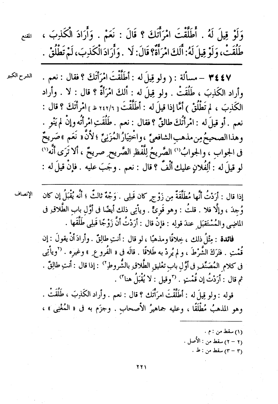 قوله: ولو قِيلَ له: أطَلقْتَ امرَأَتَك؟ قال: نعم. وأراد الكَذِبَ، طَلُقَتْ. وهو المذهبُ مُطْلَقًا، وعليه جماهيرُ الأصحابِ. وجزَم به فى «المُغْنِى»،