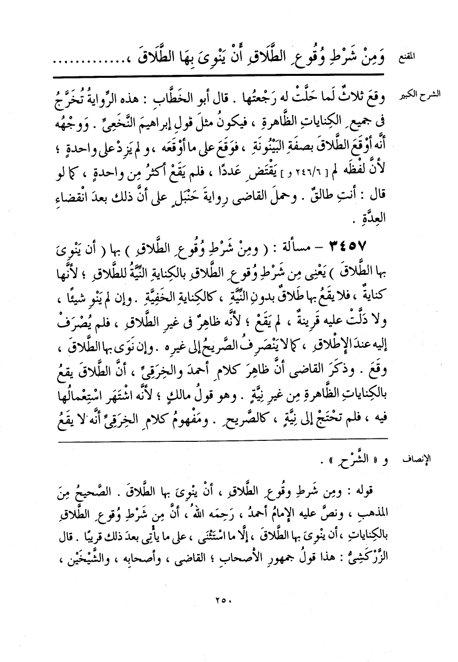قوله: ومِن شَرطِ وقُوعِ الطَّلاق، أَنْ ينْوِىَ بها الطَّلاقَ. الصَّحيحُ مِنَ المذهبِ، ونصَّ عليه الإِمامُ أحمدُ، رَحِمَه اللَّهُ، أنَّ مِن شَرْطِ وُقوعِ الطَّلاقِ بالكِناياتِ، أن ينْوِىَ بها الطَّلاقَ، إلَّا ما اسْتَثْنَى، على ما يأْتِى بعدَ ذلك قريبًا. قال الزَّرْكَشِىُّ: هذا قولُ جمهورِ الأصحابِ؛ القاضى، وأصحابِه، والشَّيْخَيْن،