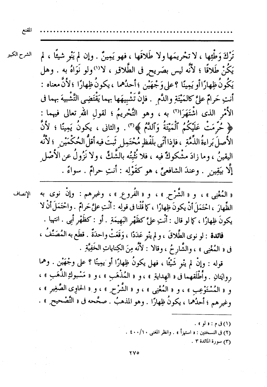 «المُغْنِى»، و «الشَّرْحِ»، و «الفُروعِ»، وغيرِهم: وإنْ نوى به الظِّهارَ، احْتَمَلَ أَنْ يكونَ ظِهارًا، كما قُلْنا فى قولِه: أنْتِ علىَّ حَرامٌ. واحْتَمَلَ أَنْ لا يكونَ ظِهارًا، كما لو قال: أنْتِ علىَّ كظَهْرِ البَهِيمَةِ. أو: كظَهْرِ أبِى. انتهيا.