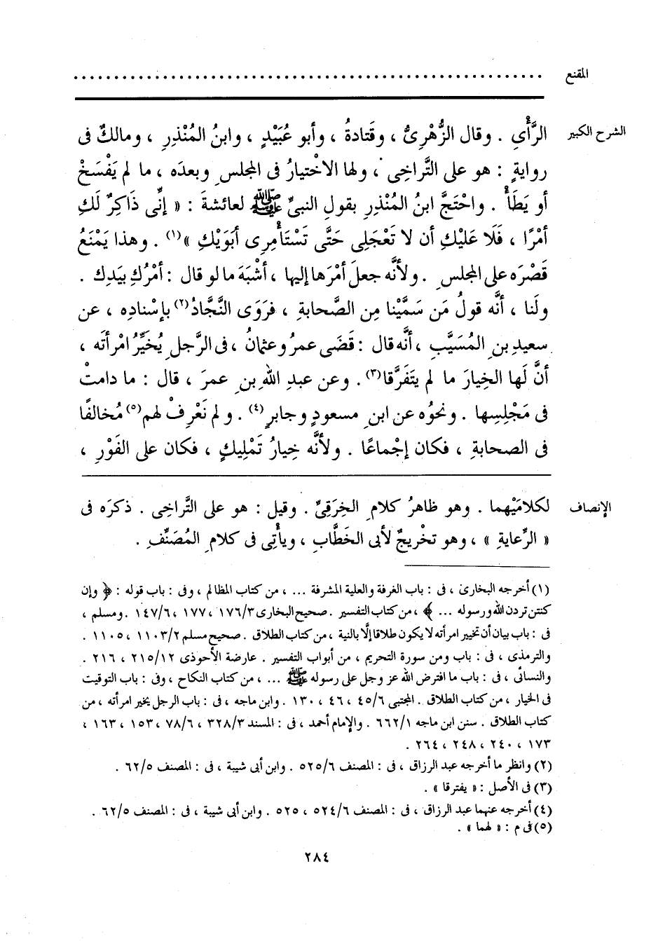 لكلامَيْهما. وهو ظاهرُ كلامِ الخِرَقِىِّ. وقيل: هو على التَّراخِى. ذكرَه فى «الرِّعايَةِ»، وهو تخْريجٌ لأبى الخَطَّابِ، ويأْتِى فى كلامِ المُصَنِّفِ.