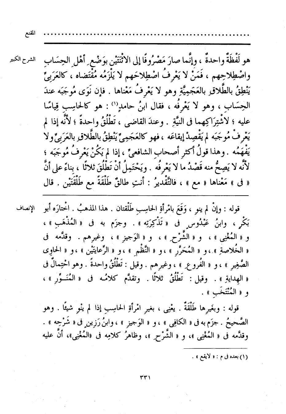 قوله: وبغَيرِها طَلْقَةٌ. يعْنِى، بغيرِ امْرأةِ الحاسِبِ إذا لم ينْوِ شيئًا. وهو الصَّحيحُ. جزَم به فى «الكافِى»، و «الوَجيزِ»، وابنُ رَزِينٍ فى «شَرْحِه». وقدَّمه فى «المُغْنِى»، و «الشَّرْحِ»، وظاهرُ كلامِه فى «المُغْنِى»، أنَّ عليه