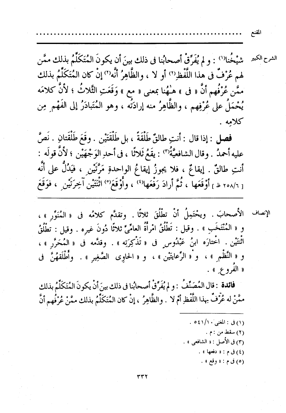 الأصحابَ. ويحْتَمِلُ أَنْ تطْلُقَ ثلاثًا. وتقدَّم كلامُه فى «المُنَوِّرِ»، و «المُنْتَخَبِ». وقيل: تَطْلُقُ امْرأَةُ العامِّىِّ ثلاثًا دُونَ غيرِه. وقيل: تطْلُقُ اثْنتَيْن. اخْتارَه ابن عَبْدُوسٍ فى «تَذْكِرَتِه». وقدَّمه فى «المُحَرَّرِ»، و «النُّظْمِ»، و «الرِّعايتَيْن»، و «الحاوِى الصَّغِيرِ». وأطْلَقهُنَّ فى «الفُروعِ».