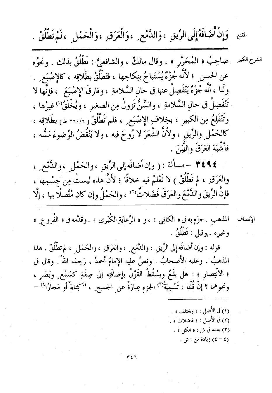المذهبِ. جزَم به فى «الكافِى»، و «الرِّعايَةِ الكُبْرى». وقدَّمه فى «الفُروعِ» وغيرِه. وقيل: تَطْلُقُ.