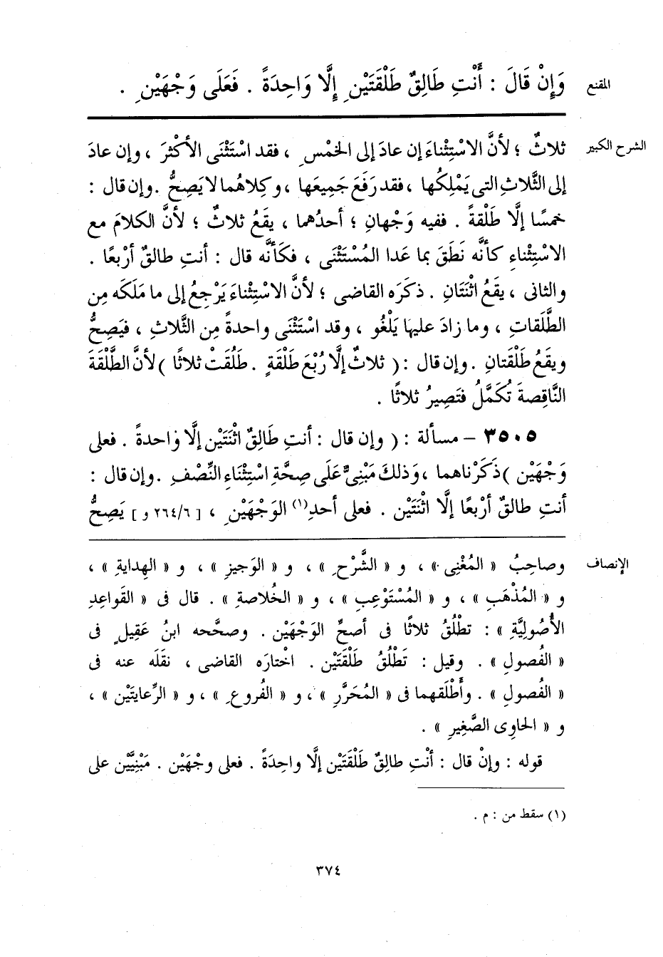 وصاحِبُ «المُغْنِى»، و «الشَّرْحِ»، و «الوَجيزِ»، و «الهِدايَةِ»، و «المُذْهَبِ»، و «المُسْتَوْعِبِ»، و «الخُلاصةِ». قال فى «القَواعِدِ الأُصُولِيَّةِ»: تطْلُقُ ثلاثًا فى أصحِّ الوَجْهَيْن. وصحَّحه ابنُ عَقِيلٍ فى «الفُصولِ». وقيل: تَطْلُقُ طَلْقَتَيْن. اخْتارَه القاضى، نقَلَه عنه فى «الفُصولِ». وأطْلَقهما فى «المُحَرَّرِ»، و «الفُروعِ»، و «الرِّعايتَيْن»، و «الحاوِى الصَّغِيرِ».