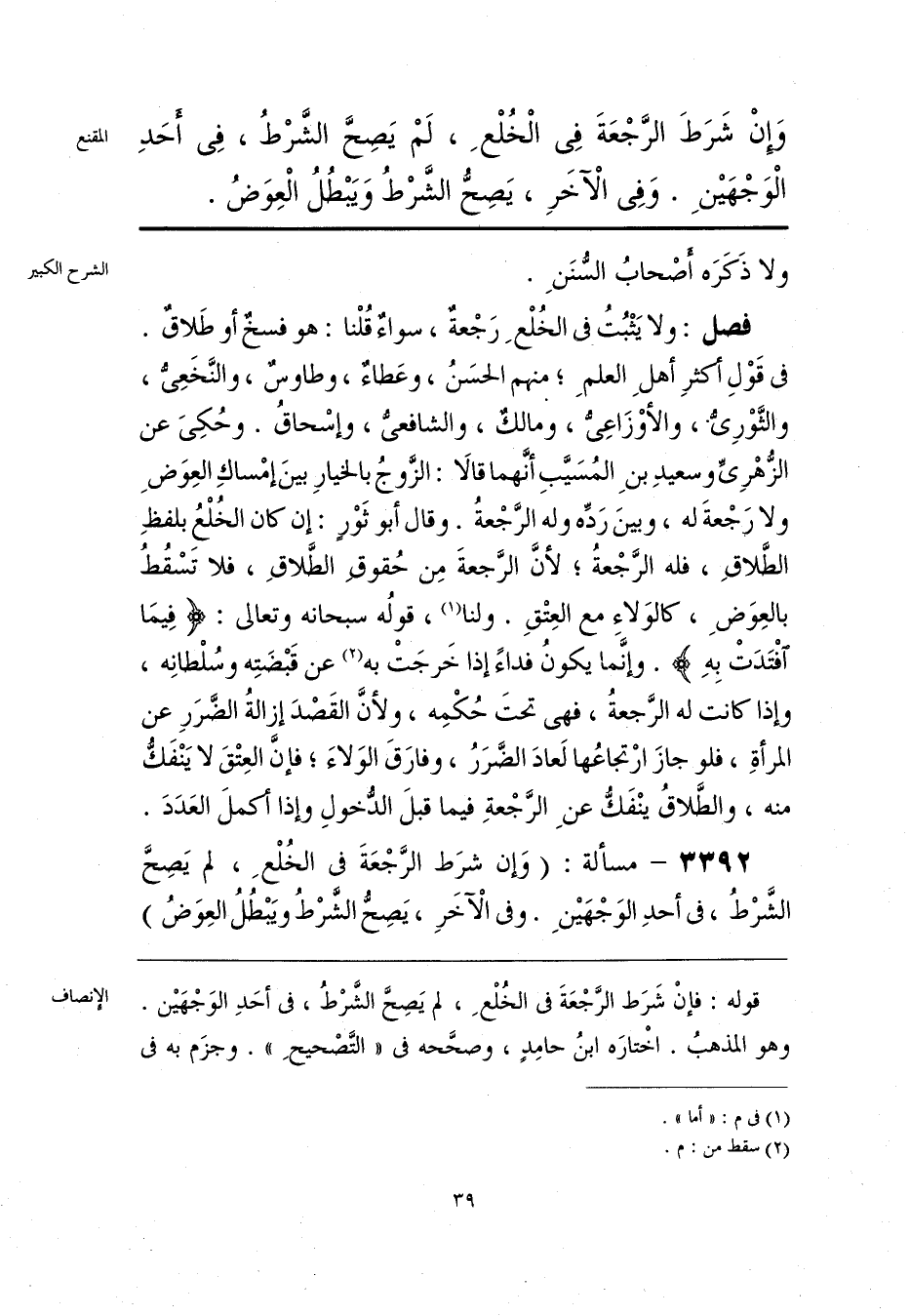 قوله: فإنْ شَرَط الرَّجْعَةَ فى الخُلْعِ، لم يَصِحَّ الشَّرْطُ، فى أحَدِ الوَجْهَيْن. وهو المذهبُ. اخْتارَه ابنُ حامِدٍ، وصحَّحه فى «التَّصْحيحِ». وجزَم به فى