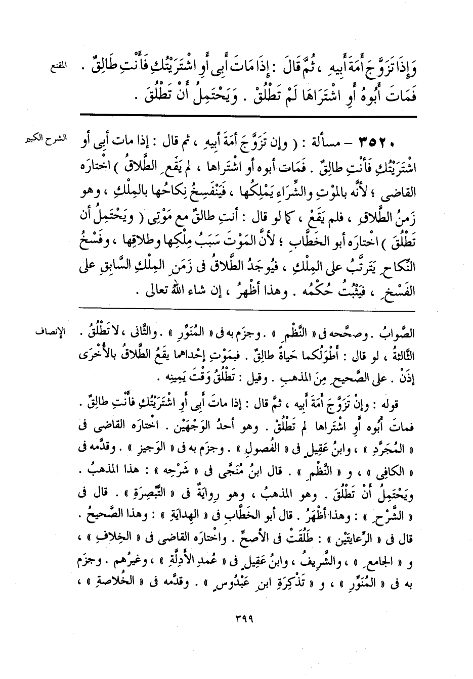 قوله: وإنْ تَزَوَّجَ أَمَةَ أَبِيه، ثمَّ قال: إذا ماتَ أَبِي أَو اشْتَرَيتُكِ فأنْتِ طالِقٌ. فماتَ أَبُوه أو اشْتَراها لم تَطْلُقْ. وهو أحدُ الوَجْهَين. اخْتارَه القاضي في «المُجَرَّدِ»، وابنُ عَقِيلٍ في «الفُصولِ». وجزَم به في «الوَجيزِ». وقدَّمه في «الكافِي»، و «النَّظْمِ». قال ابنُ مُنَجَّى في «شَرْحِه»: هذا المذهبُ. ويَحْتَمِلُ أَنْ تَطْلُقَ. وهو المذهبُ، وهو رِوايَةٌ في «التَّبْصِرَةِ». قال في «الشَّرْحِ»: وهذا أظْهَرُ. قال أبو الخَطَّابِ في «الهِدايَةِ»: وهذا الصَّحيحُ. قال في «الرِّعايتَين»: طَلُقَتْ في الأصحِّ. واخْتارَه القاضي في «الخِلافِ»، و «الجامعِ»، والشَّرِيفُ، وابنُ عَقِيلٍ في «عُمدِ الأَدِلَّةِ»، وغيرُهم. وجزَم به في «المُنَوِّرِ»، و «تَذْكِرَةِ ابنِ عَبْدُوسٍ». وقدَّمه في «الخُلاصةِ»،
