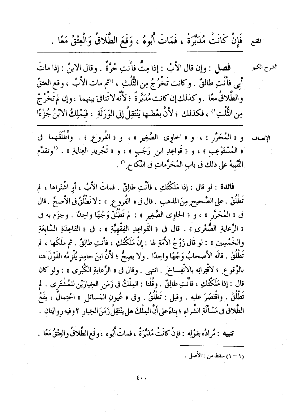 تنبيه: مُرادُه بقوْلِه: فإنْ كانَتْ مُدَبَّرَةً، فماتَ أَبُوه، وقَع الطَّلاقُ والعِتْقُ مَعًا.