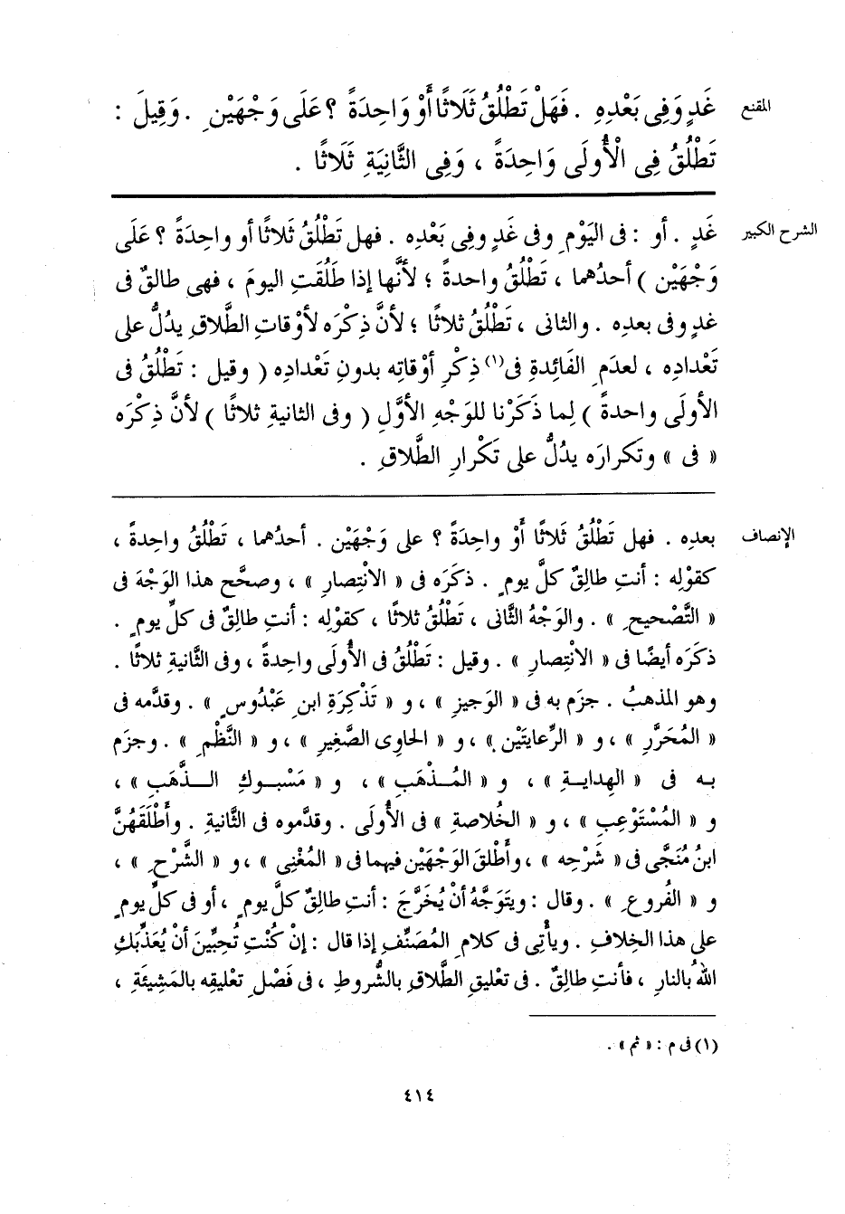 بعدِه. فهل تَطْلُقُ ثَلاثًا أَوْ واحِدَةً؟ على وَجْهَين. أحدُهما، تَطْلُقُ واحِدةً، كقوْلِه: أنتِ طالِقٌ كلَّ يومٍ. ذكَرَه في «الانْتِصارِ»، وصحَّح هذا الوَجْهَ في «التَّصْحيحِ». والوَجْهُ الثَّاني، تَطْلُقُ ثلاثًا، كقوْلِه: أنتِ طالِقٌ في كلِّ يومٍ. ذكَرَه أيضًا في «الانْتِصارِ». وقيل: تَطْلُقُ في الأُولَى واحِدةً، وفي الثَّانيةِ ثلاثًا. وهو المذهبُ. جزَم به في «الوَجيزِ»، و «تَذْكِرَةِ ابنِ عَبْدُوسٍ». وقدَّمه في «المُحَرَّرِ»، و «الرِّعايتَين»، و «الحاوي الصَّغِيرِ»، و «النَّظْمِ». وجزَم به في «الهِدايةِ»، و «المُذْهبِ»، و «مَسْبوكِ الذَّهَبِ»، و «المُسْتَوْعِبِ»، و «الخُلاصةِ» في الأُولَى. وقدَّموه في الثَّانيةِ. وأَطْلَقَهُنَّ ابنُ مُنَجَّى في «شَرْحِه»، وأَطْلقَ الوَجْهَين فيهما في «المُغْنِي»، و «الشَّرْحِ»، و «الفُروعِ». وقال: ويتَوجَّهُ أنْ يُخَرَّجَ: أنتِ طالِقٌ كلَّ يومٍ، أو في كلِّ يومٍ على هذا الخِلافِ. ويأْتِي في كلامِ المُصَنِّفِ إذا قال: إنْ كُنْتِ تُحِبِّينَ أنْ يُعَذِّبَكِ اللهُ بالنارِ، فأنتِ طالِقٌ. في تعْليقِ الطَّلاقِ بالشُّروطِ، في فَصْلِ تعْليقِه بالمَشِيئَةِ،