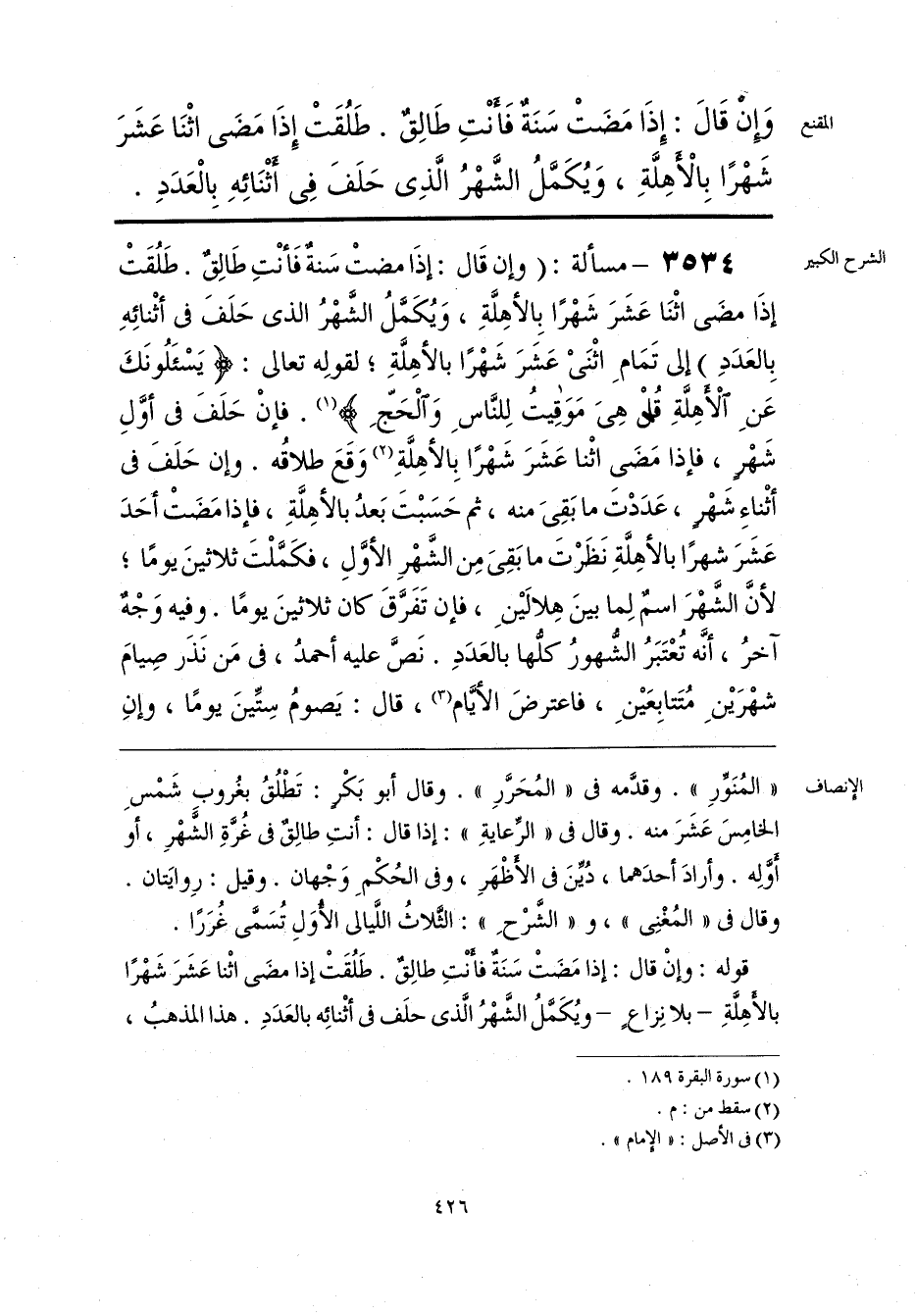 قوله: وإنْ قال: إذا مَضَتْ سَنَةٌ فأَنْتِ طالِقٌ. طَلُقَتْ إذا مضَى اثْنا عَشَرَ شَهْرًا بالأَهِلَّةِ -بلا نِزاعٍ- ويُكَمَّلُ الشَّهْرُ الَّذي حلَف في أثْنائِه بالعَدَدِ. هذا المذهبُ،